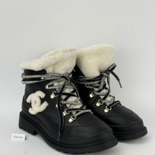 Chanel winter boots typically merge fashion-led silhouettes with solid cold-weather functionality. Design features include quilted leather (referencing the iconic 2.55 bag), chain-linked edging, cap-toe construction, and shearling linings. Materials range from lambskin and calfskin to soft suede for seasonal weather. Looks tend to be lightweight rather than snow-ready for comfort on city streets rather than snow-clearing terrain.