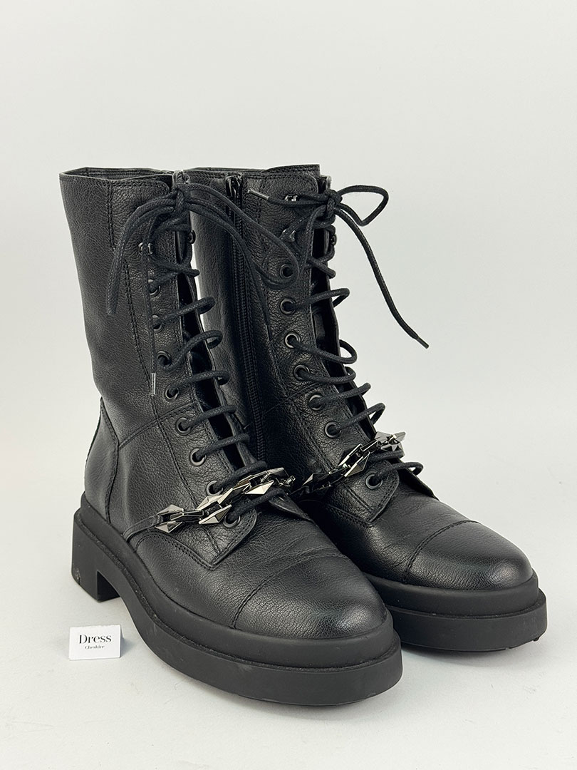 Choo boots prioritise sleek silhouettes and premium finishes. Shearling, suede, and polished leather are common, with lightweight soles. They are engineered for comfort and style on urban streets rather than severe weather. It’s no surprise you’ll find Jimmy Choo runs true to size and is a surprisingly comfy shoe for luxury brand footwear.