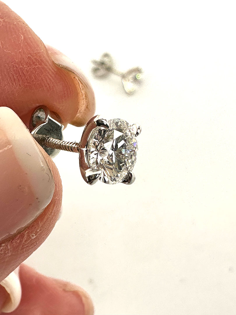 2ct lab diamond stud earrings set in platinum. These stones are D flawless and sparkle brilliantly. Boxed.