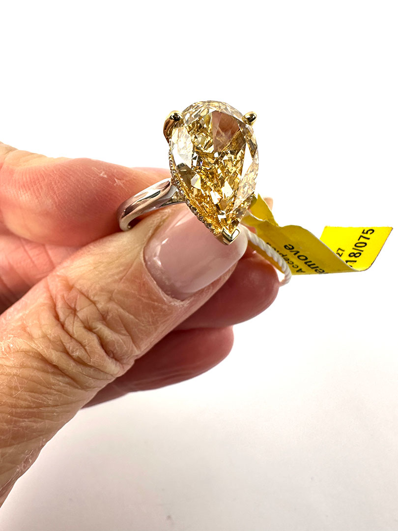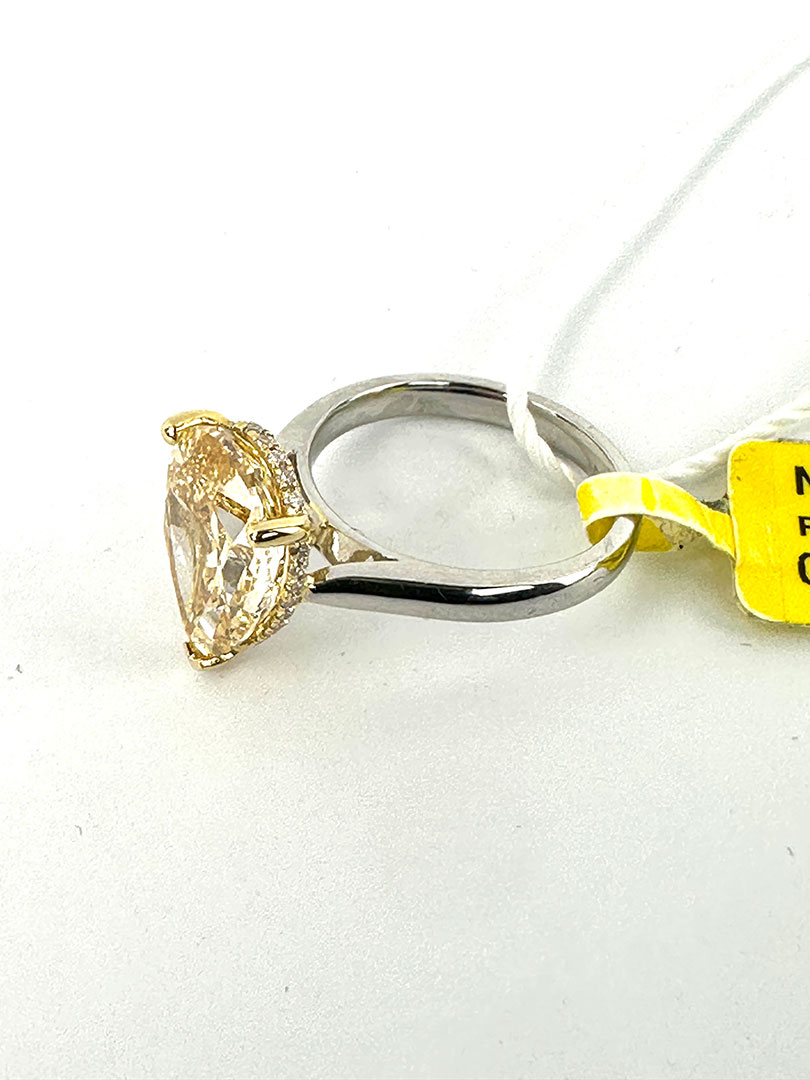 6ct Yellow Lab Diamond Pear Shaped Platinum Ring Size 52