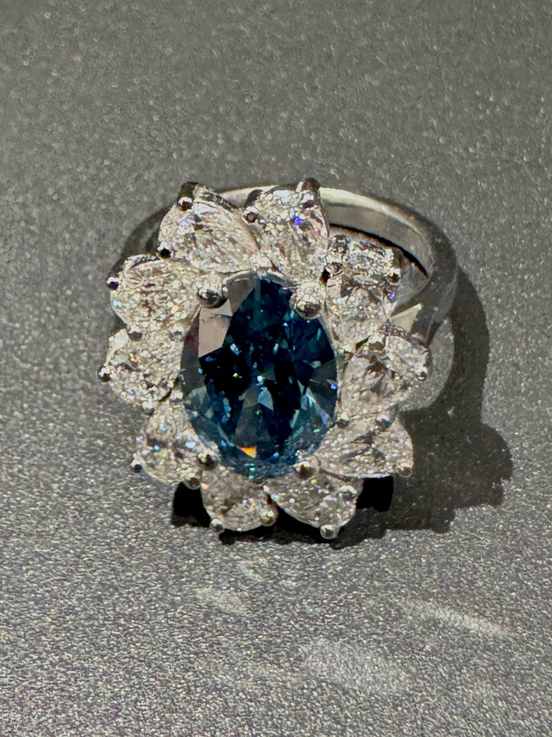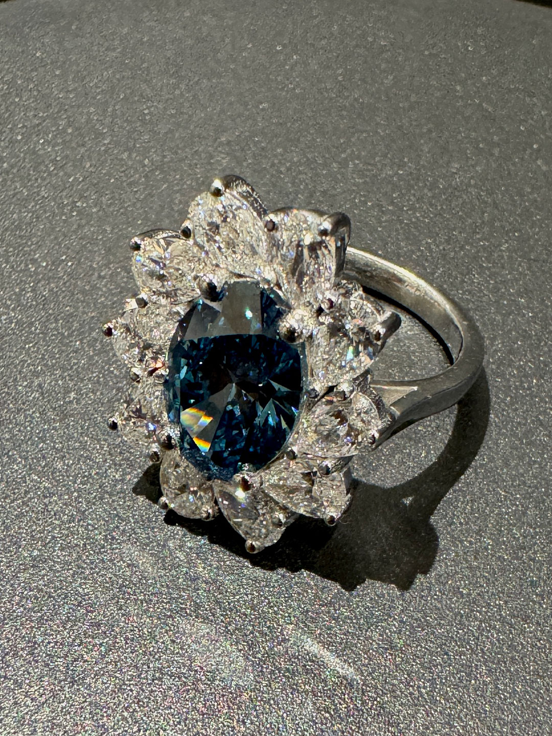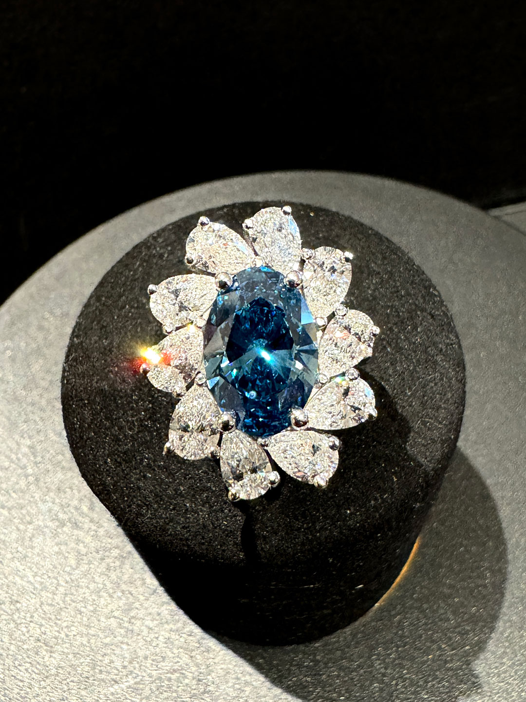 Blue Flower Ring 4ct Fancy Vivid Blue Lab Diamond with 5ct Lab Diamonds (5 x 1ct pear lab diamonds).