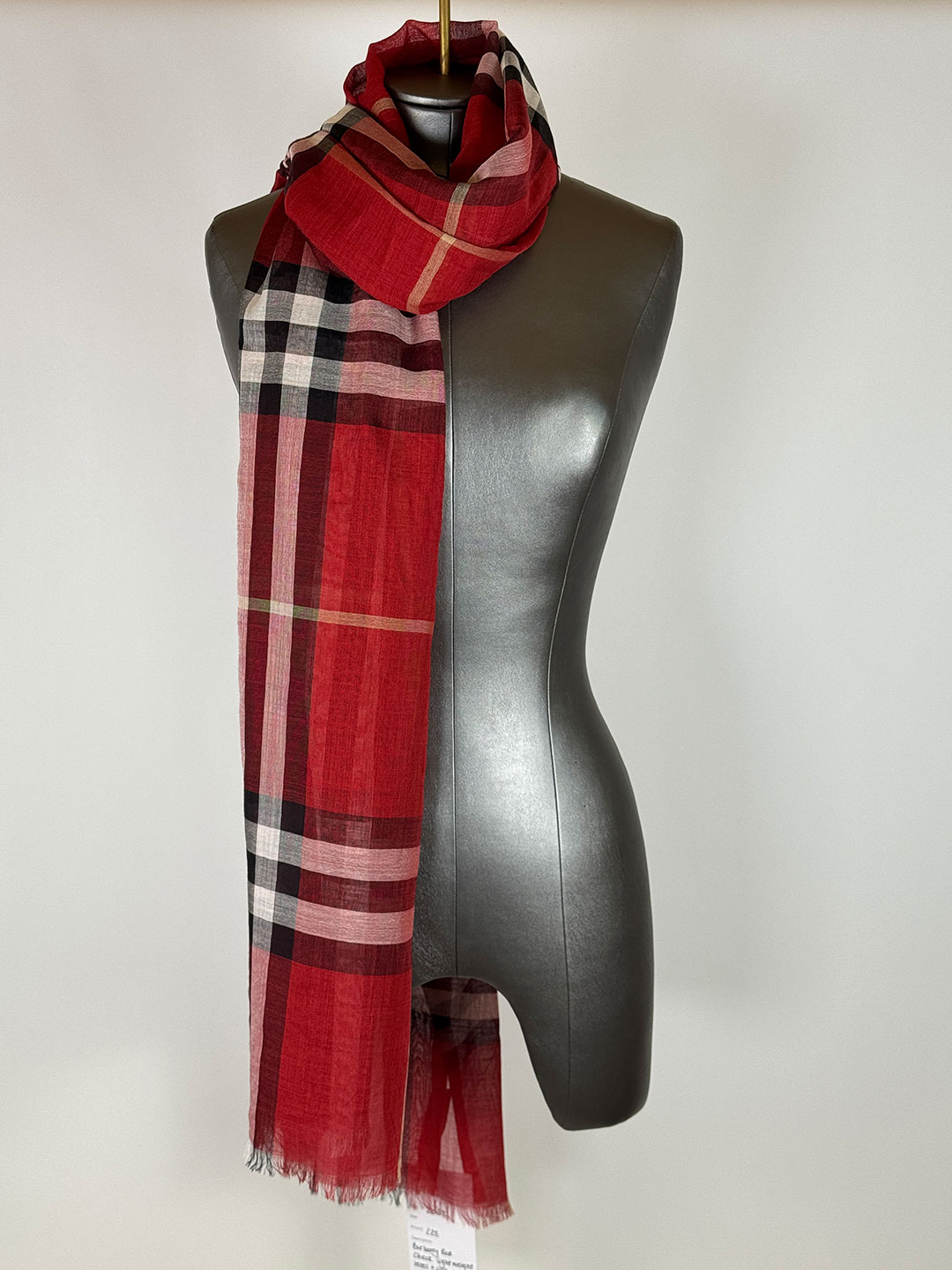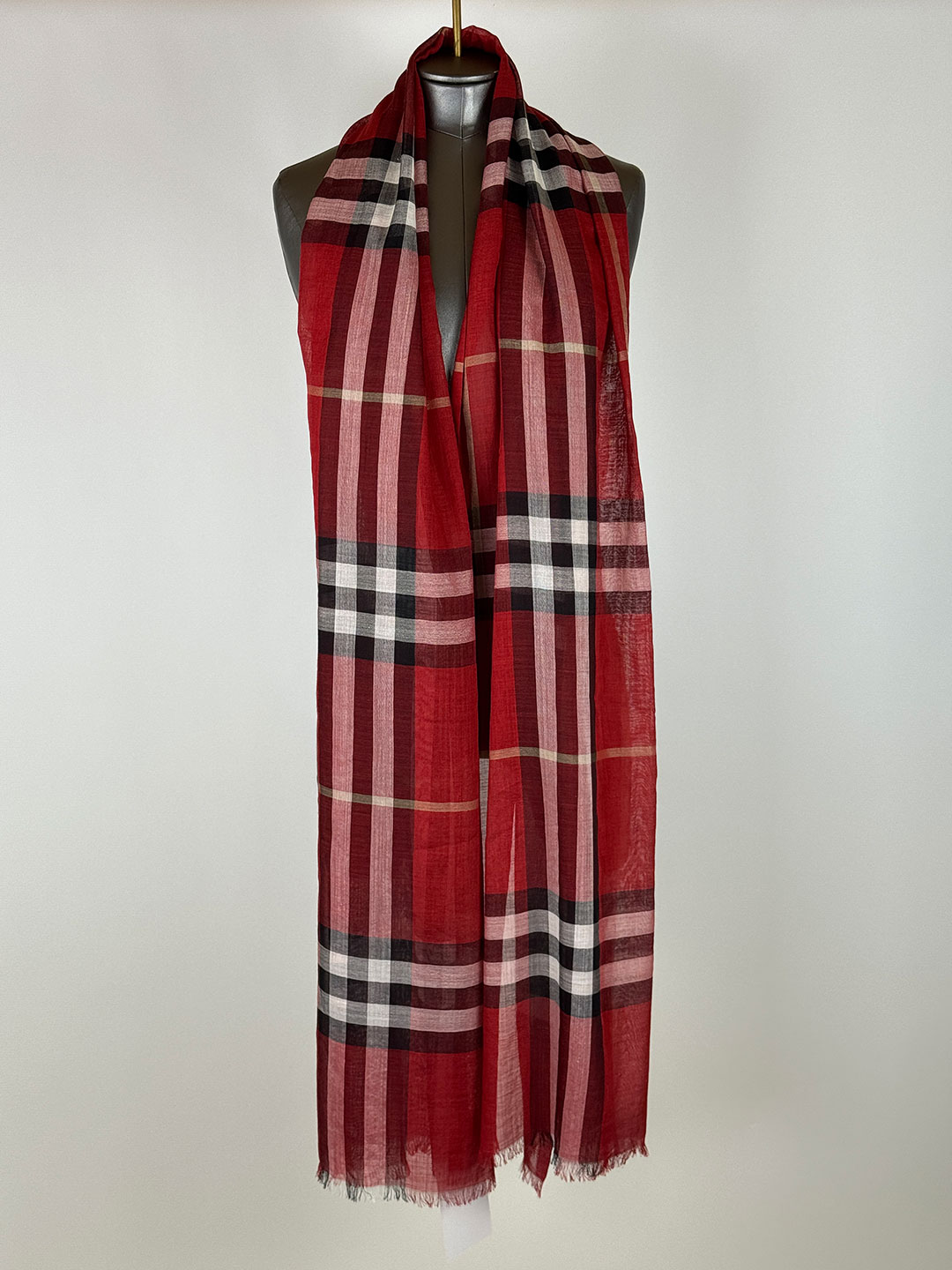 Burberry Red Check Light Weight Wool & Silk Scarf