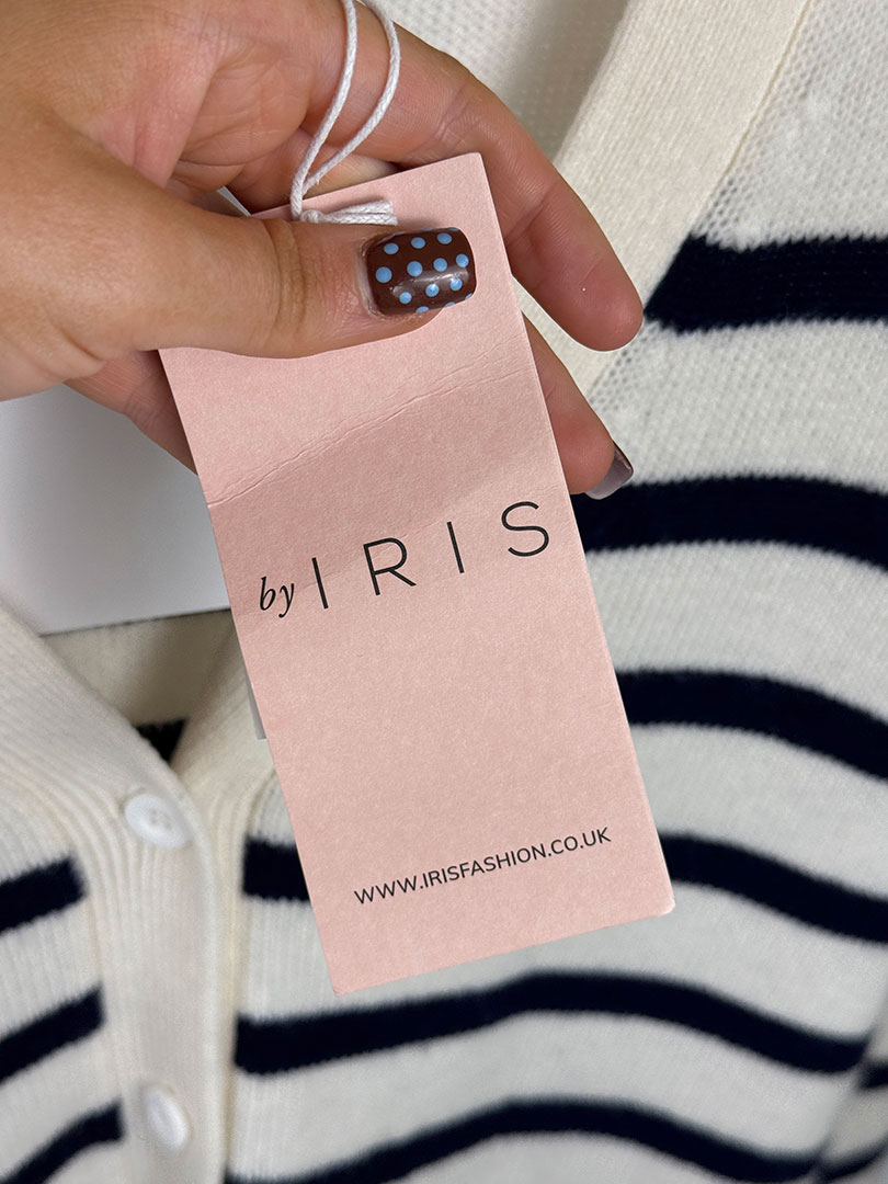 By Iris Navy and Cream Cardigan Size XS. Brand New with Tags.