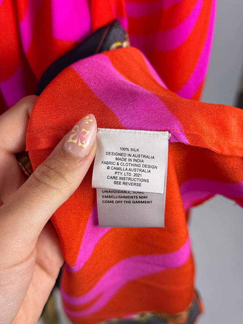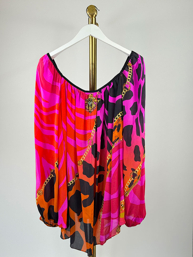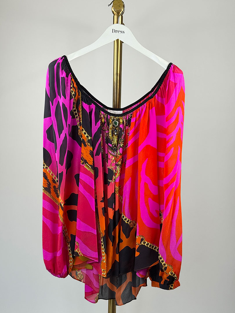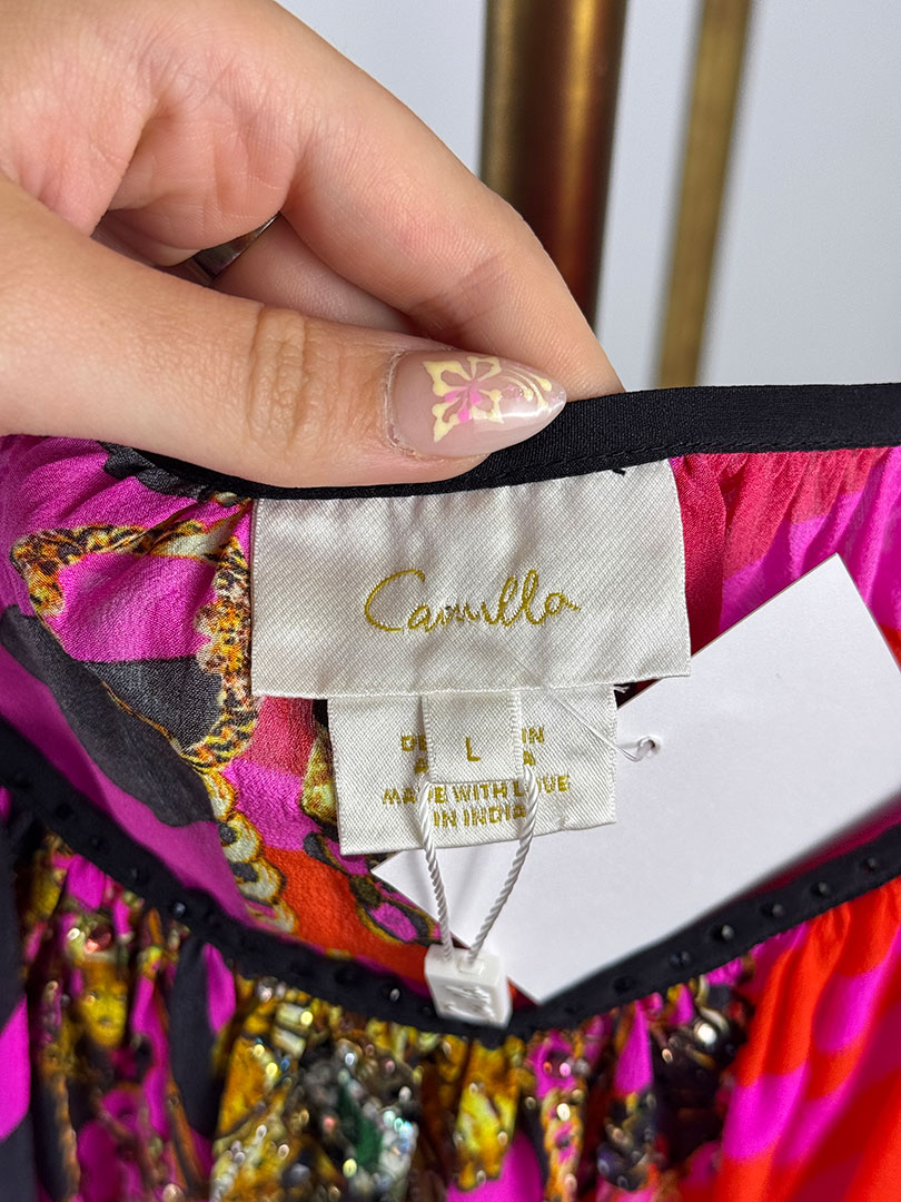 Camilla Pink & Orange Embellished Flared Blouson Sleeve Blouse Size L.