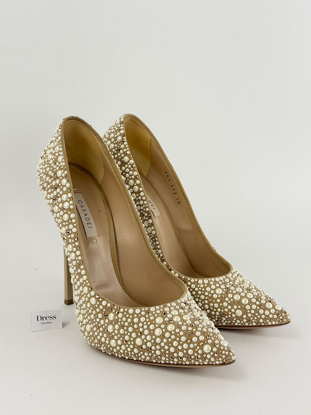 Casadei Gold & Pearl Embellished Blade Heels Size 10B (EU 40)