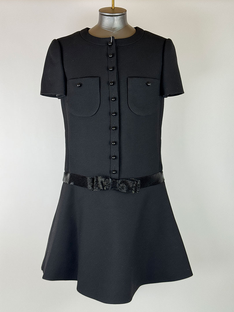 Celine Black Diagonal Wool Embroidered Chelsea Mini Dress Size FR 36 (UK 8)