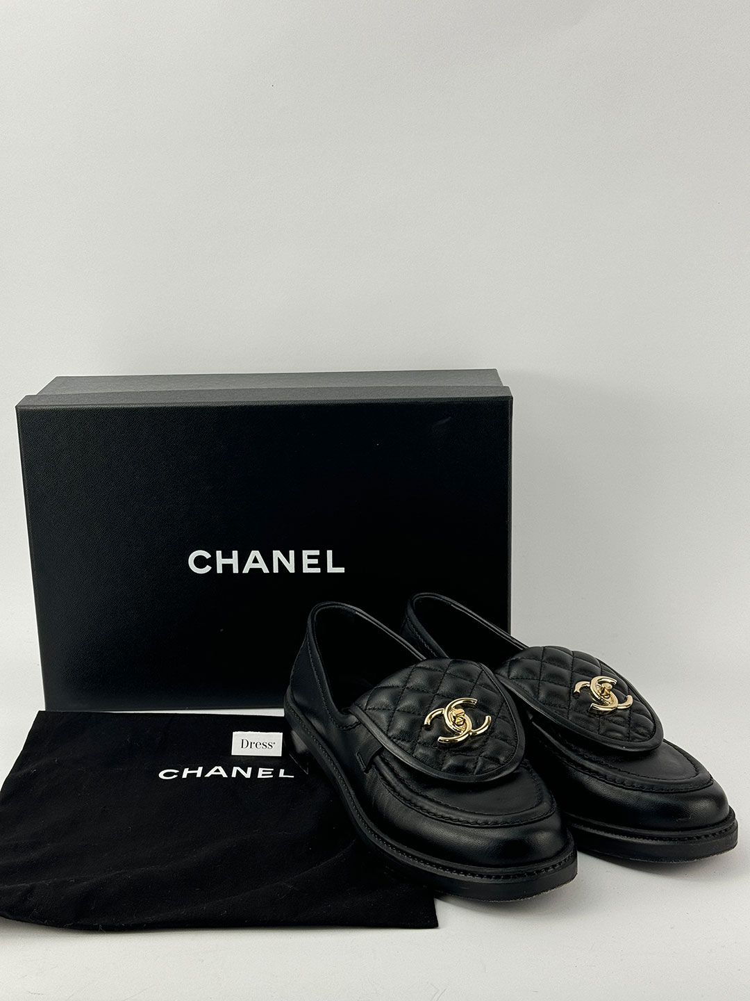 Chanel Black Loafers With CC Hardware Size 38 (UK 5)