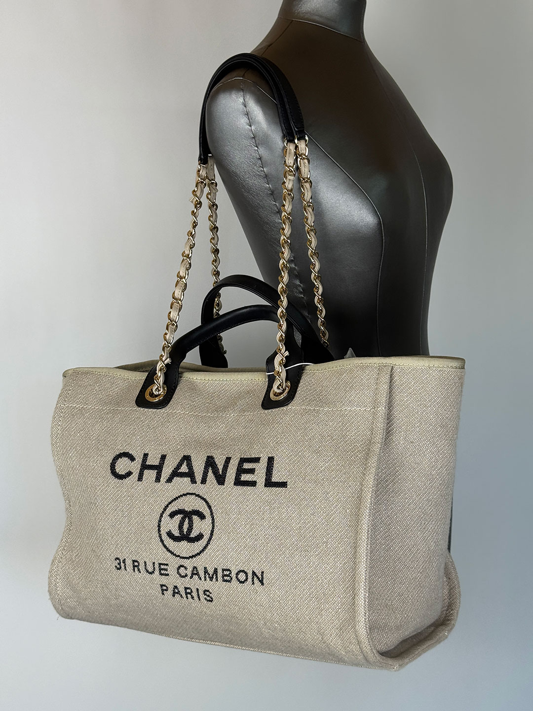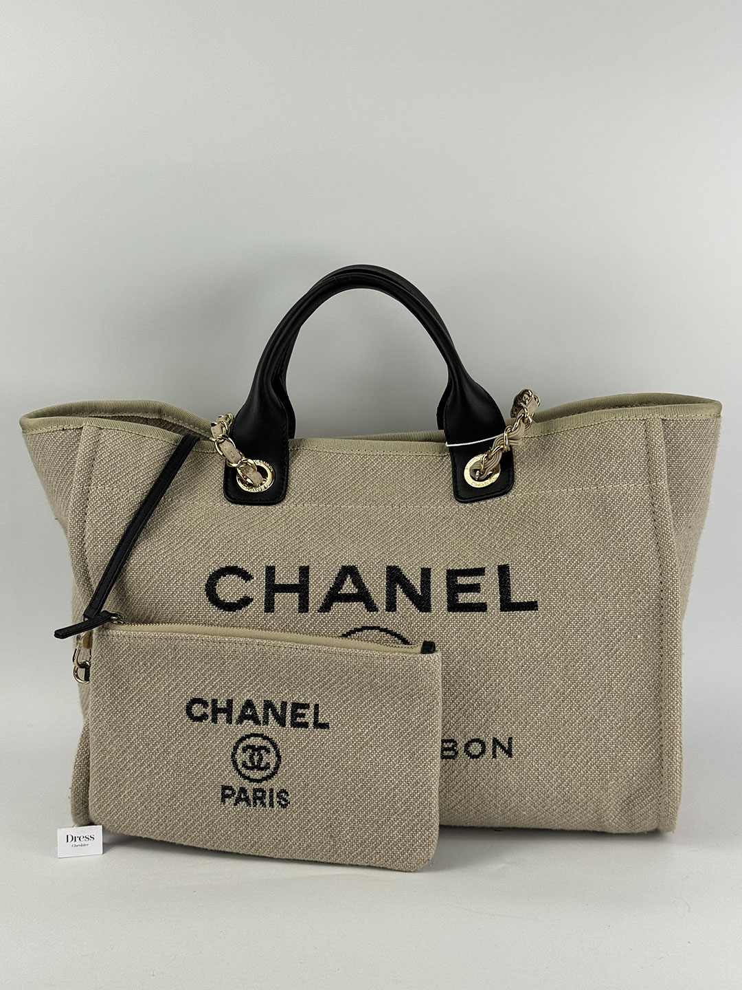 Chanel Deauville Canvas Tote Tela Beige Bag.