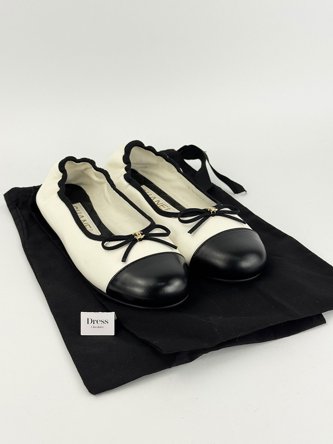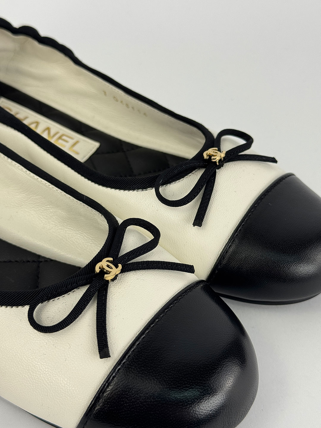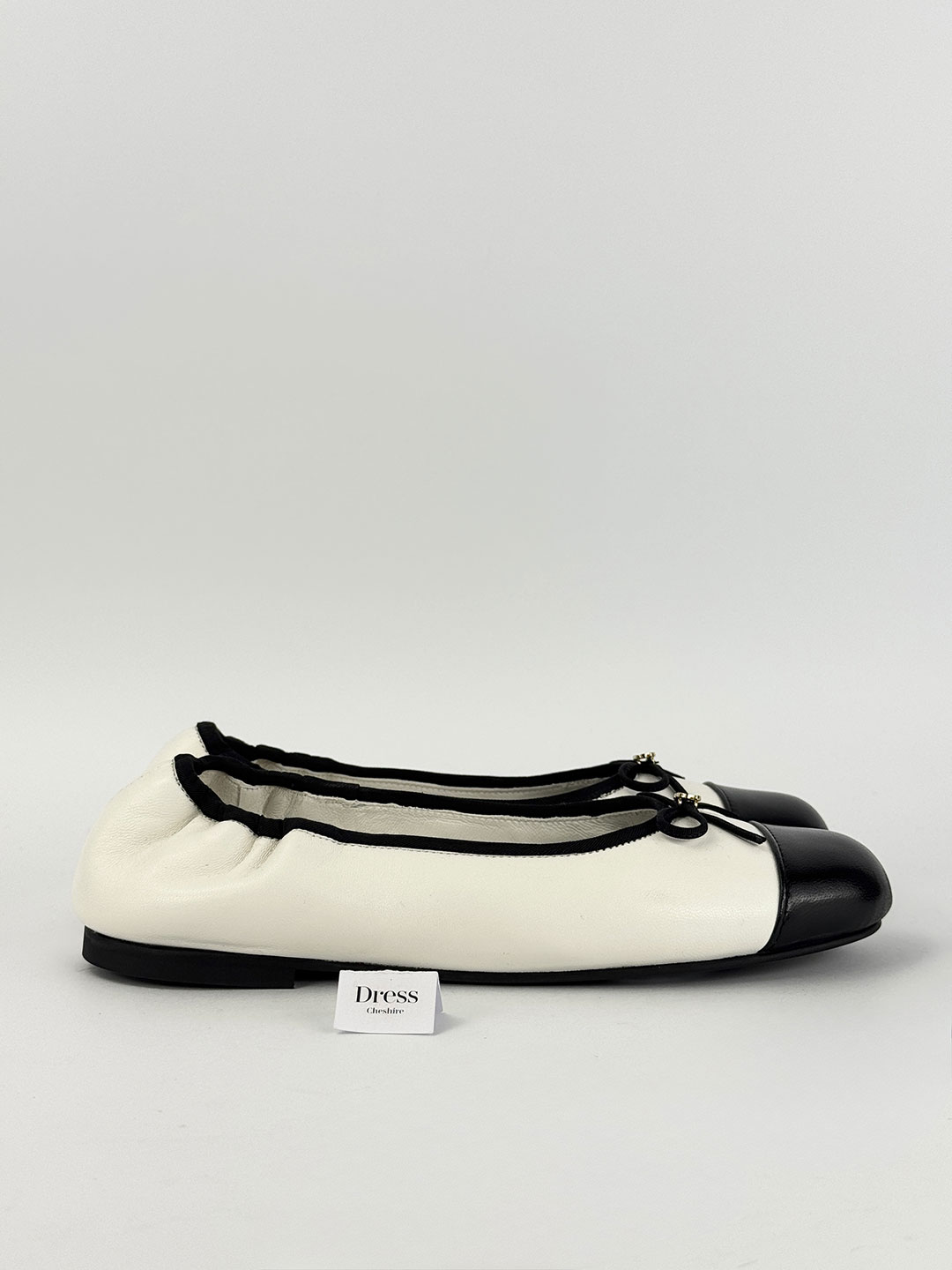 Chanel White with Black Toe Ballet Flats Size EU 37