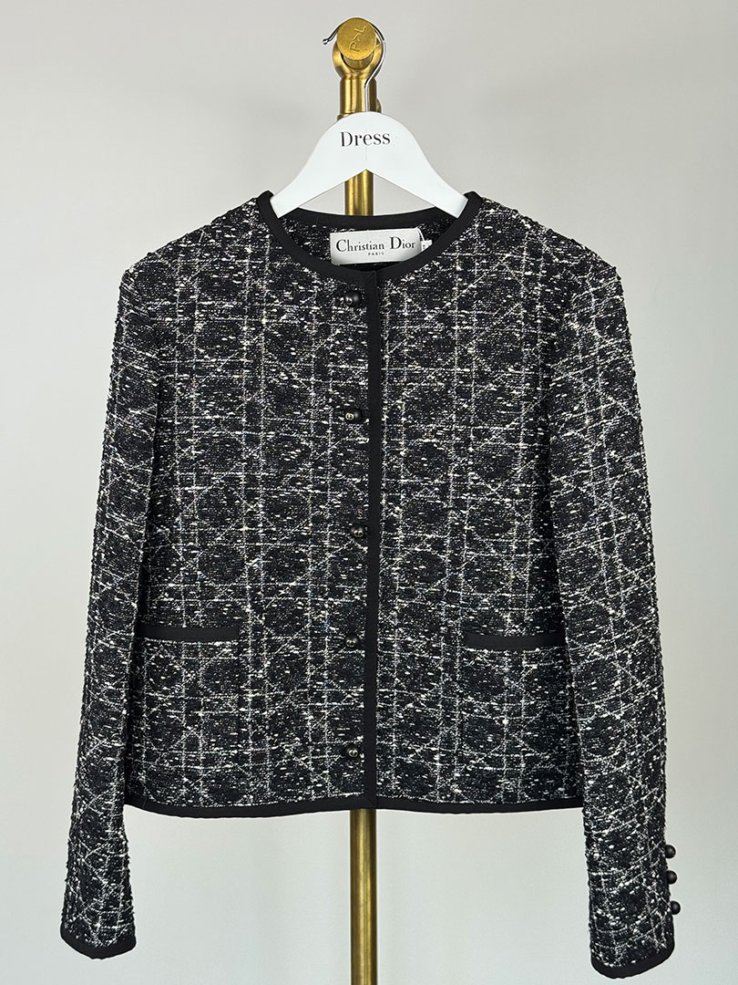 Christian Dior Black and White Tweed Macrocannage Jacket Size FR 36 (UK 8).