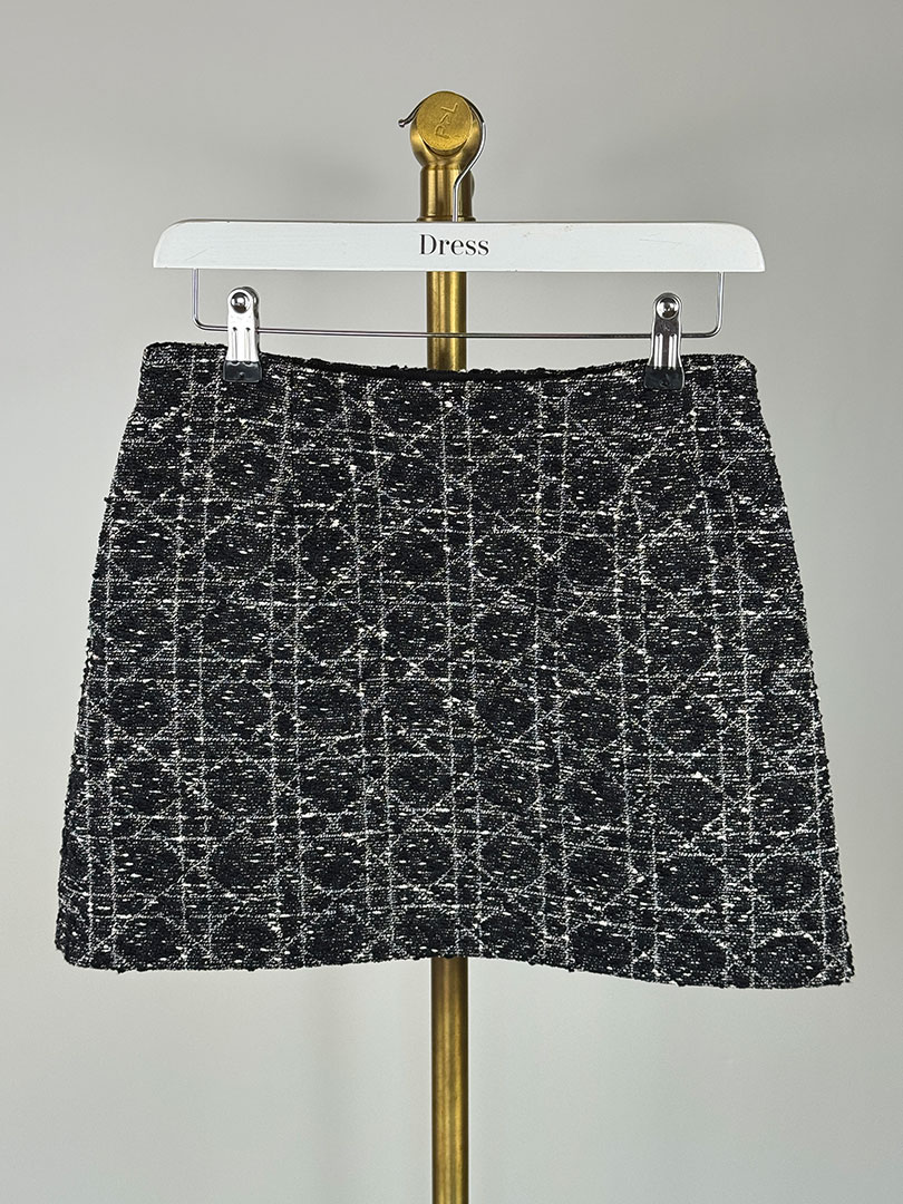 Christian Dior Black and White Tweed Macrocannage Mini Skirt Size FR 36 (UK 8).