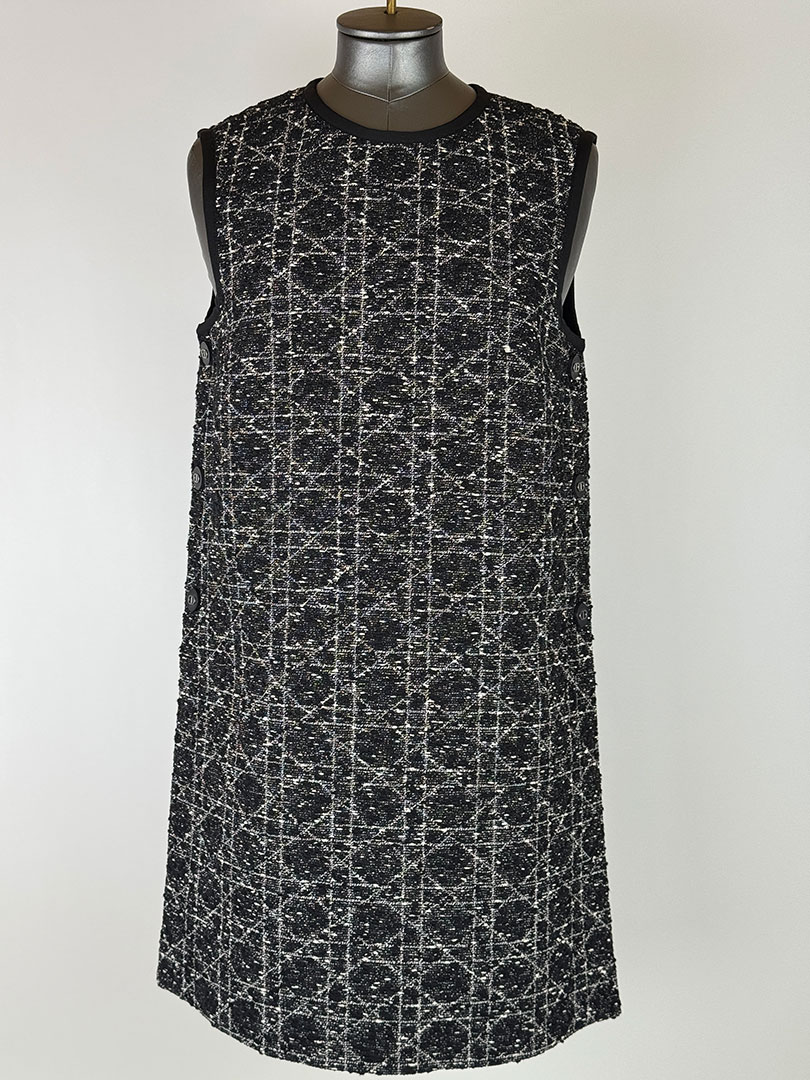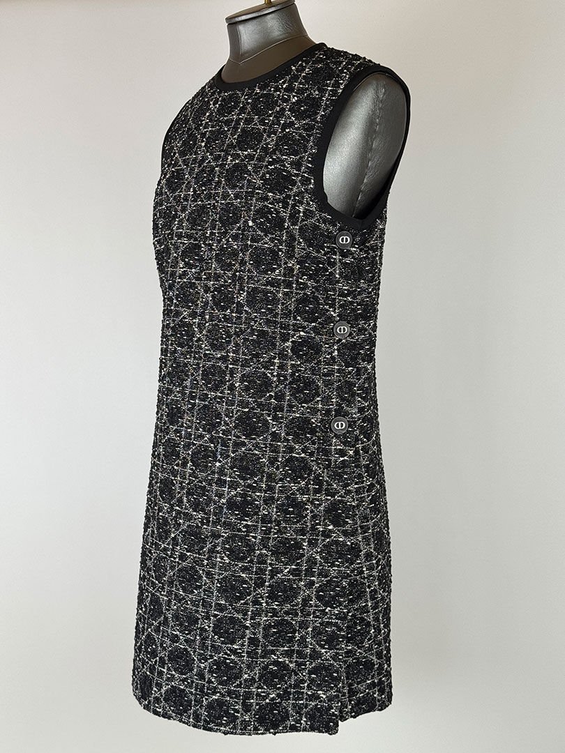Christian Dior Black and White Tweed Macrocannage Tunic Mini Dress Size FR 36 (UK 8)