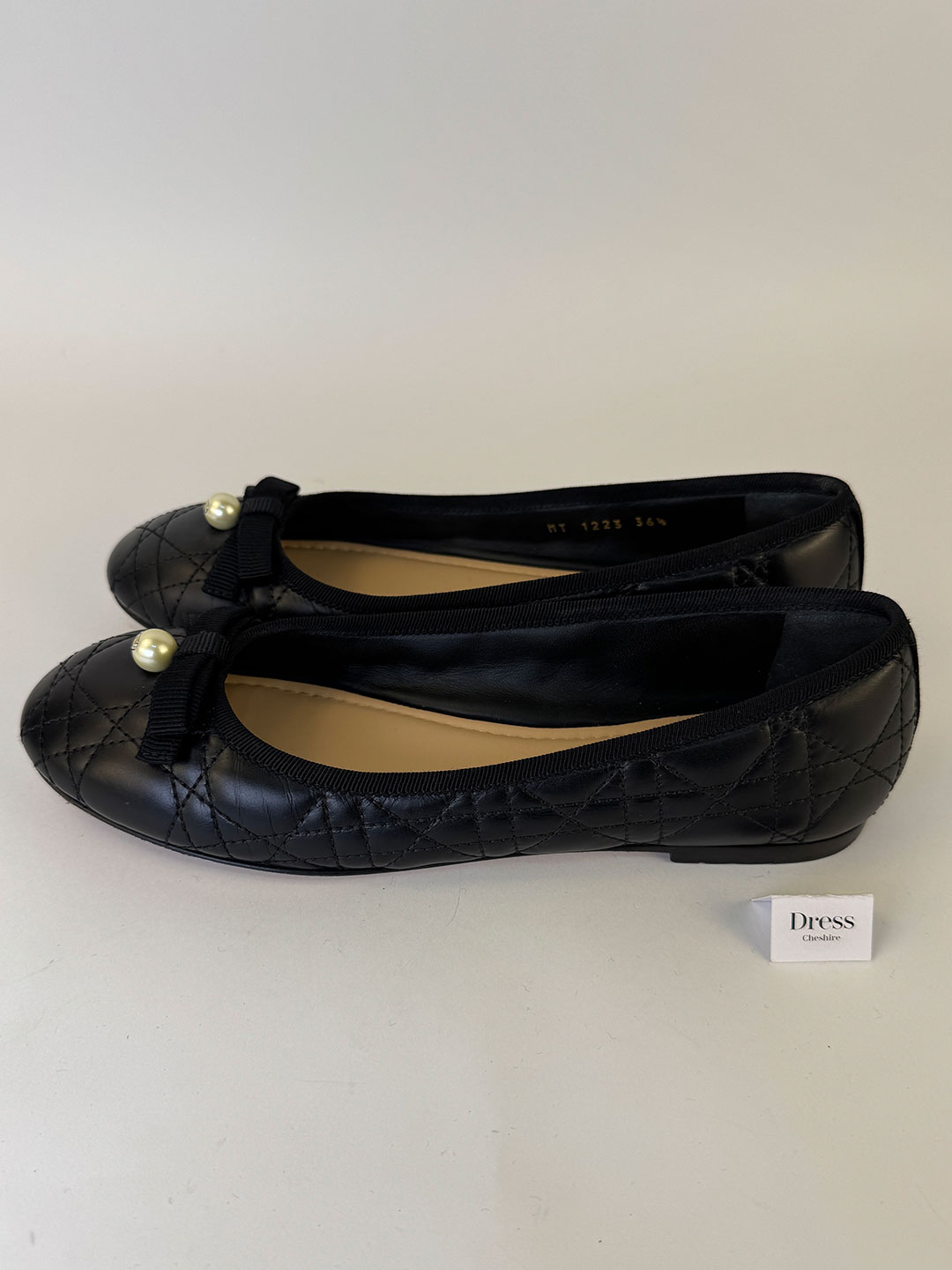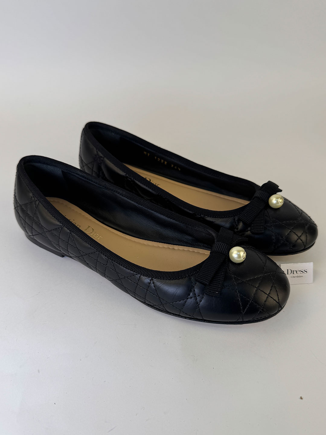 Christian Dior Black Ballet Flat with Pearl and Bow Detail Size EU 36.5.