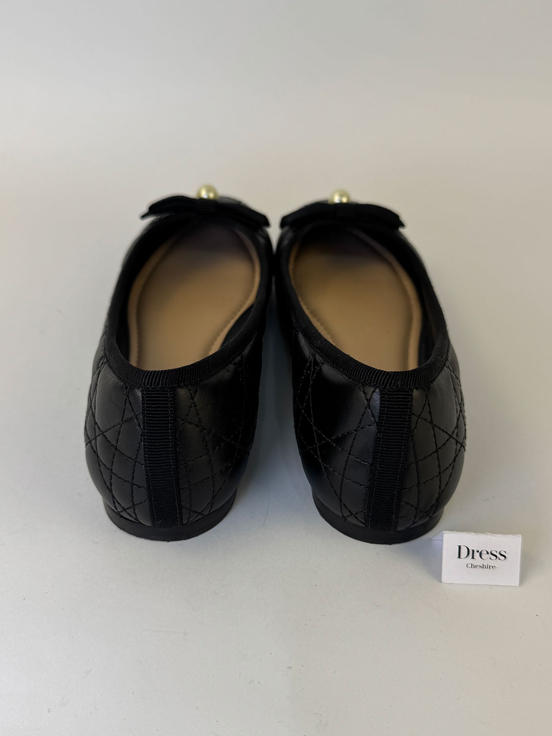 Christian Dior Black Ballet Flat with Pearl and Bow Detail Size EU 36.5