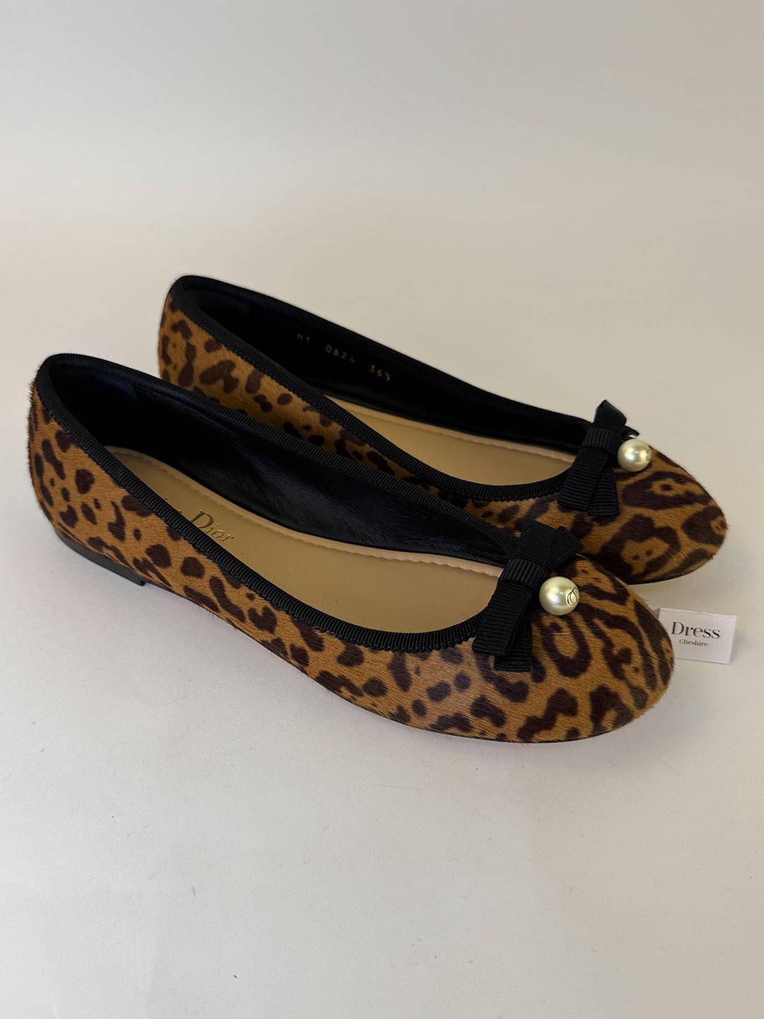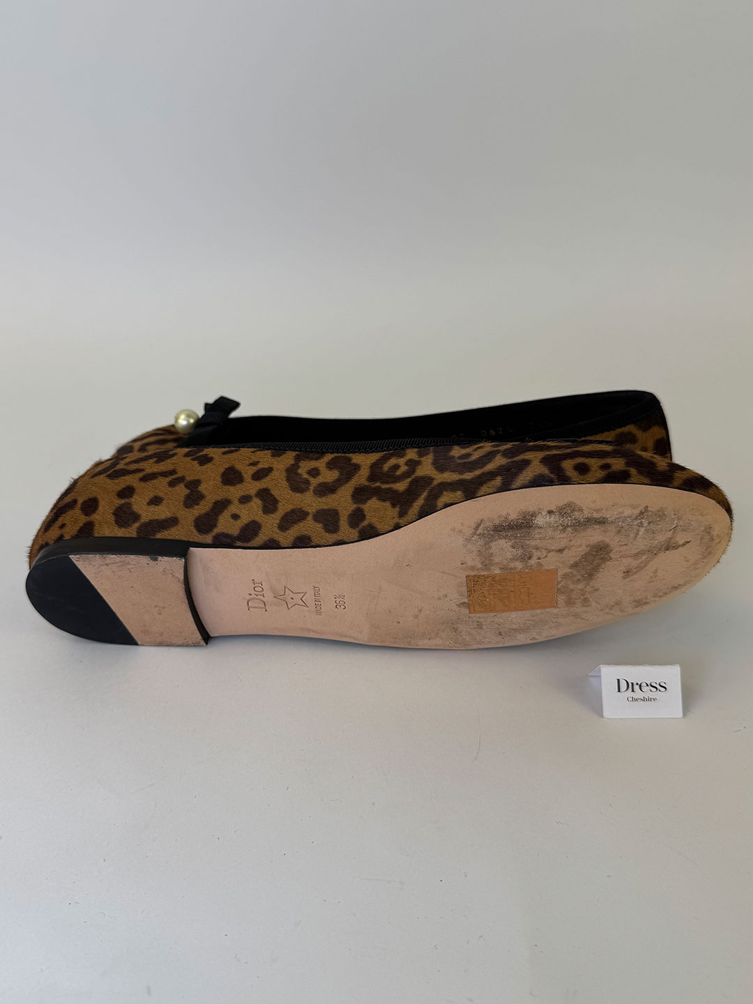 Christian Dior Black Ballet Flat with Pearl and Bow Detail Size EU 36.5