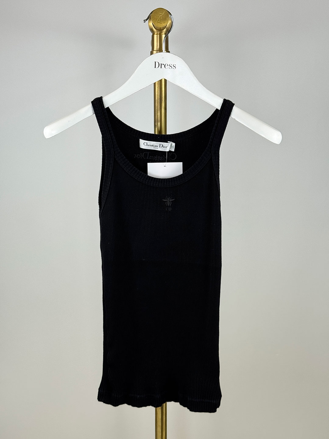 Christian Dior Black Ribbed Cotton Jersey Tank Top Size 8