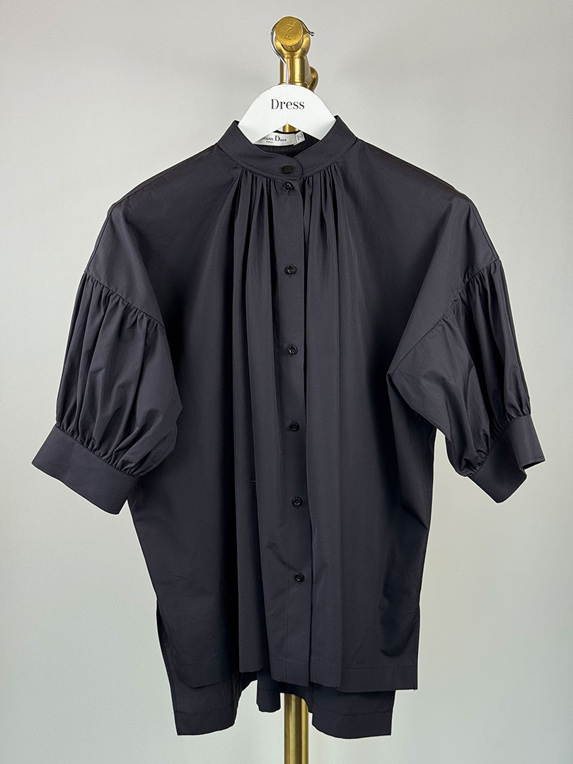 Christian Dior Black Ruched Blouse With Short Puff Sleeves Size FR 36 (UK 8)