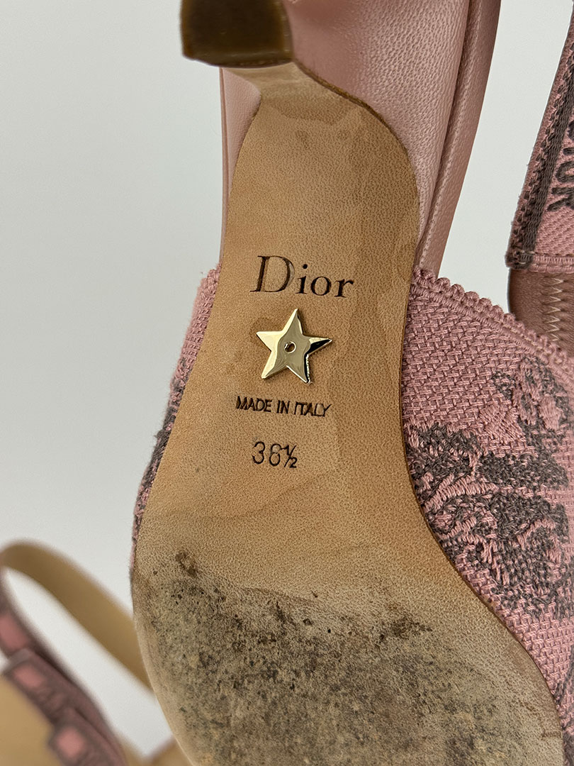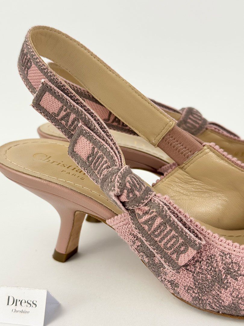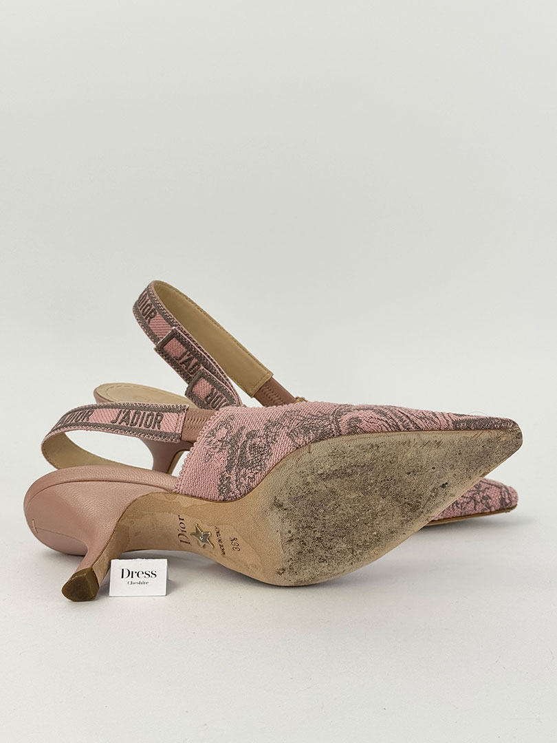 Christian Dior J’Adior Pink and Grey Floral Slingback Heels Size EU 36.5