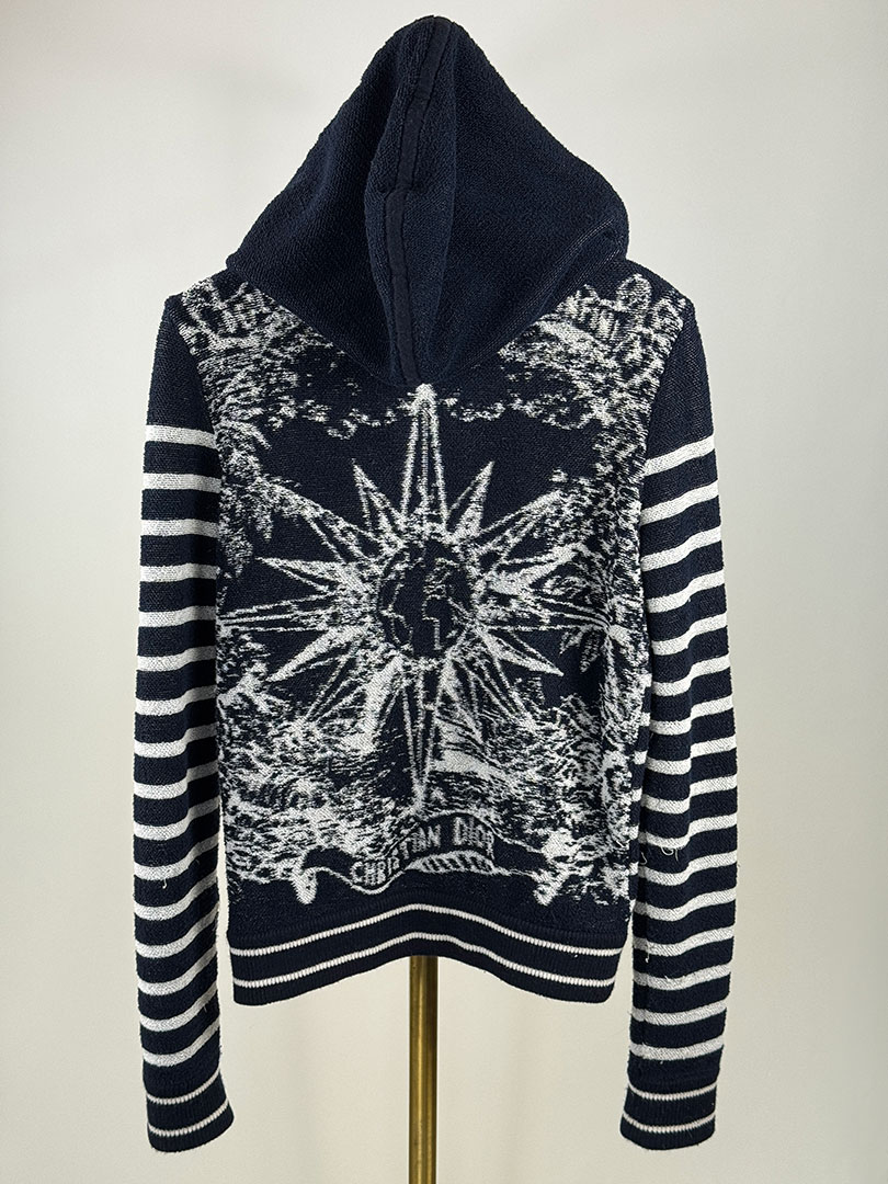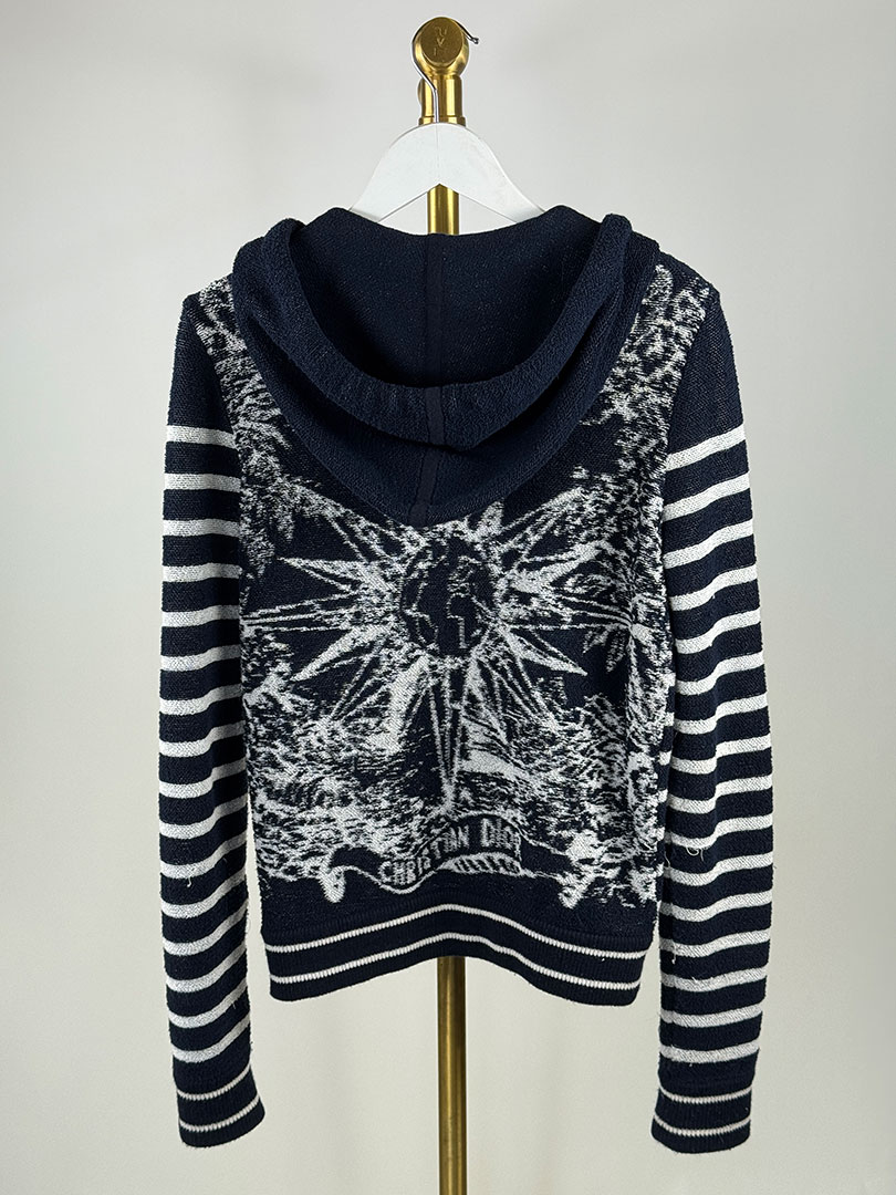 Christian Dior Navy & White Cotton & Cashmere Knit Cardigan Size UK 6