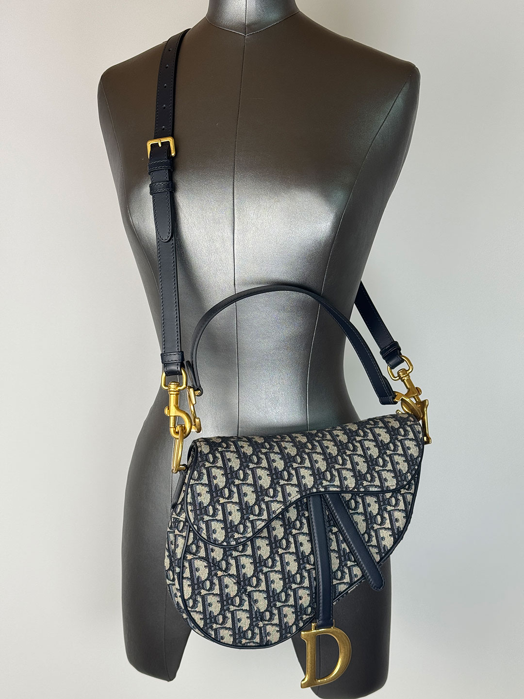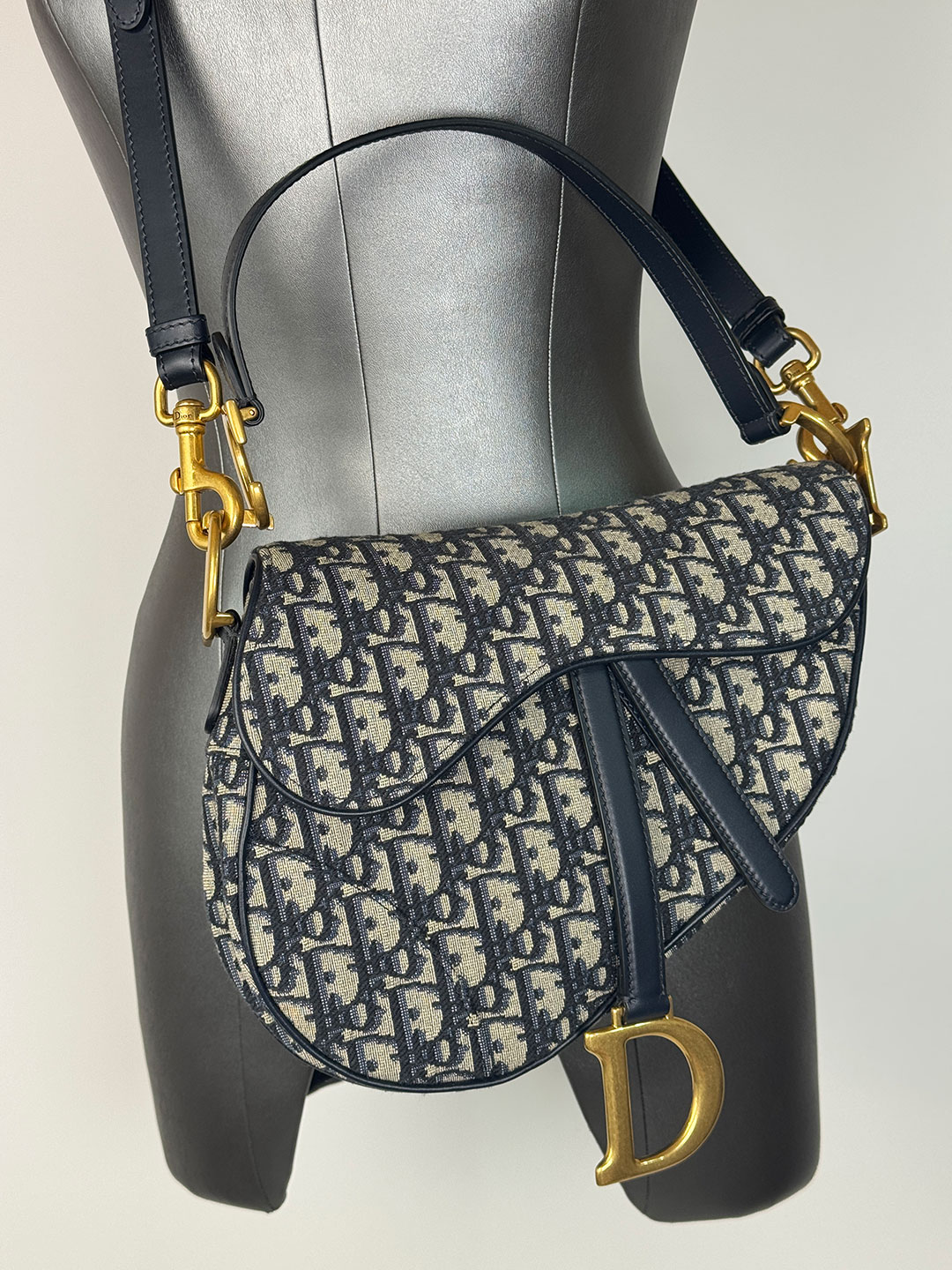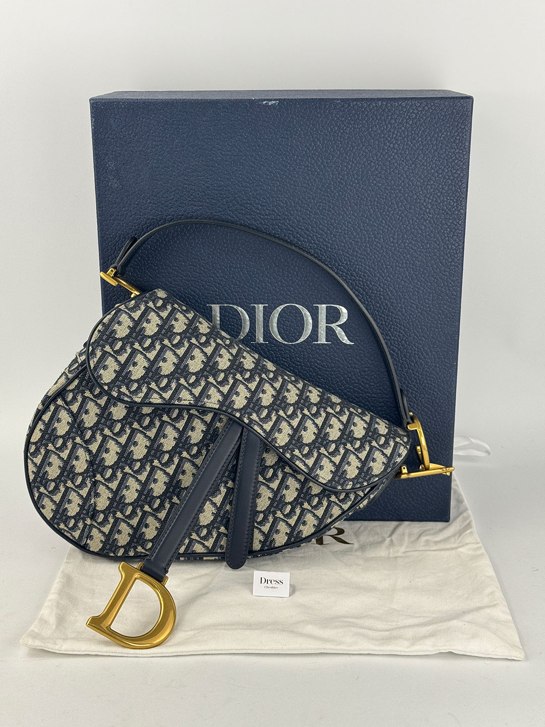 Dior Navy Oblique Jacquard Saddle Bag Boxed