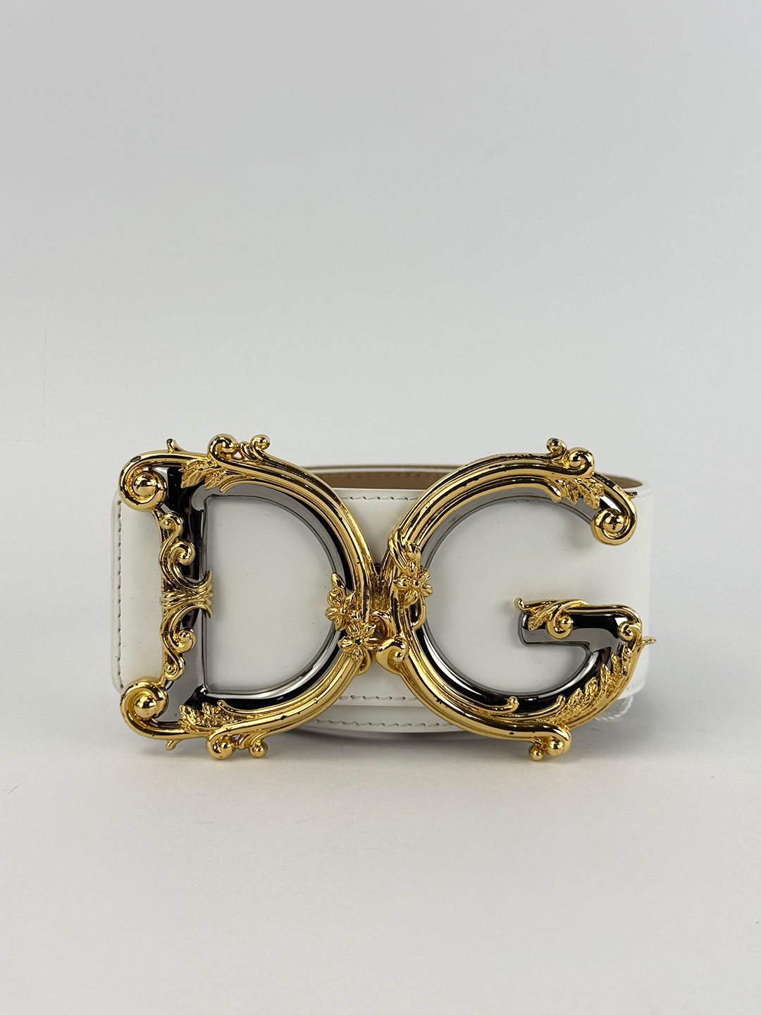 Dolce & Gabbana Baroque DG Logo White Belt