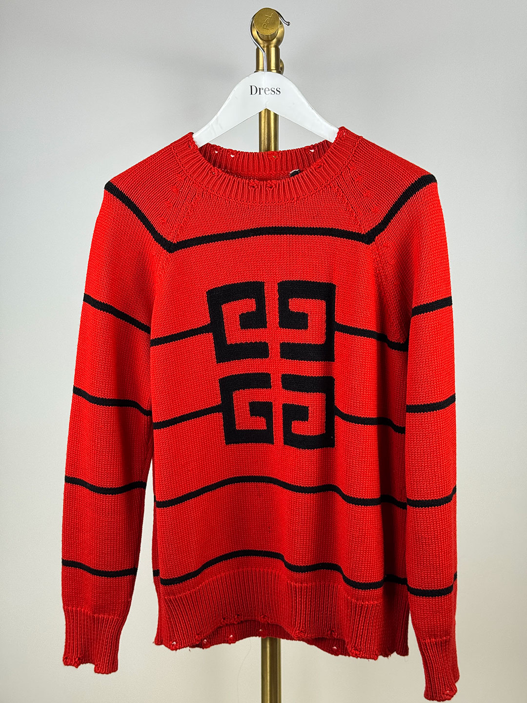 Givenchy Red & Black Logo Wool Sweater Size XS