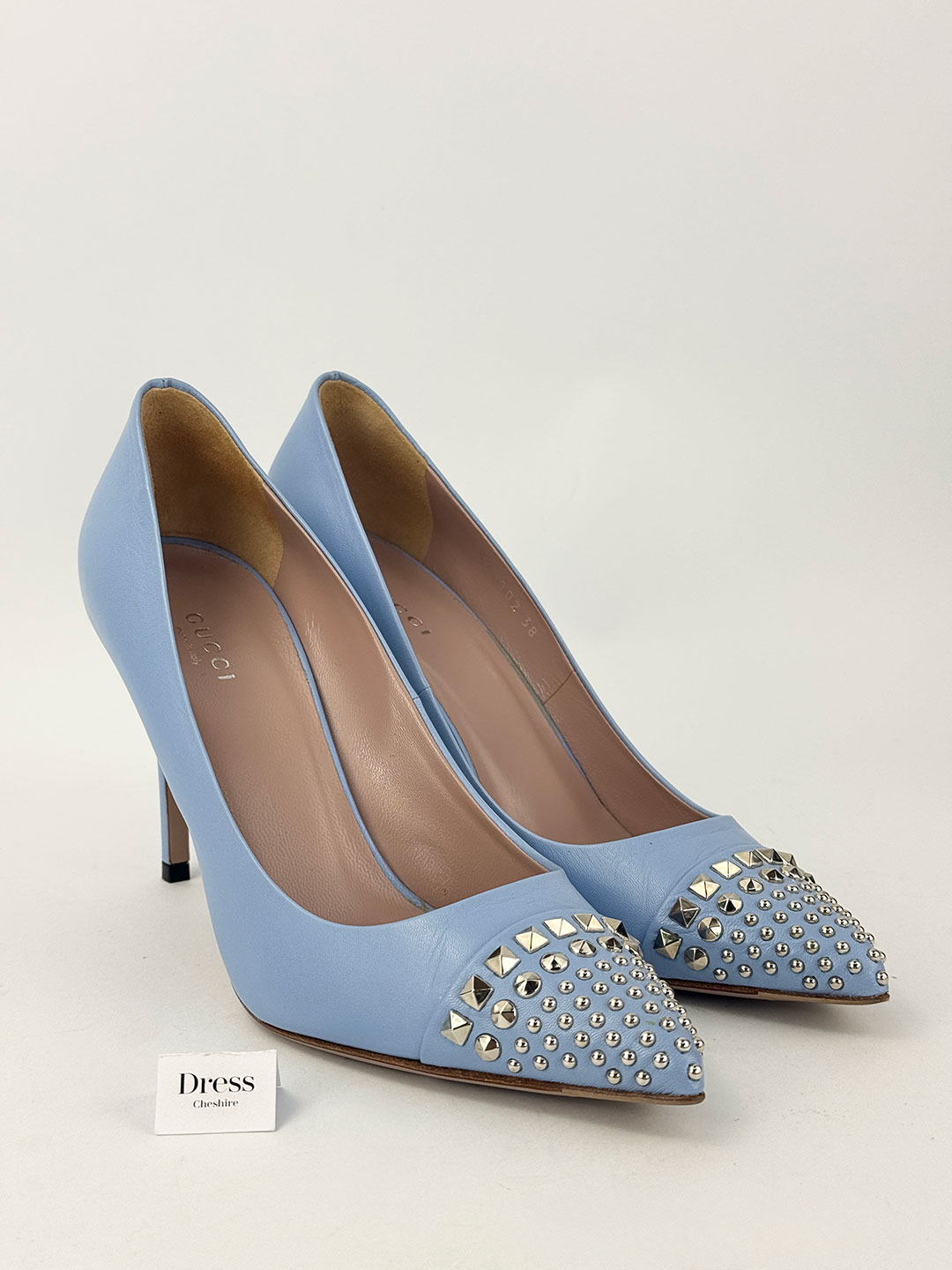 Gucci Blue Leather Studded Pointed-Toe Pumps Size EU 38
