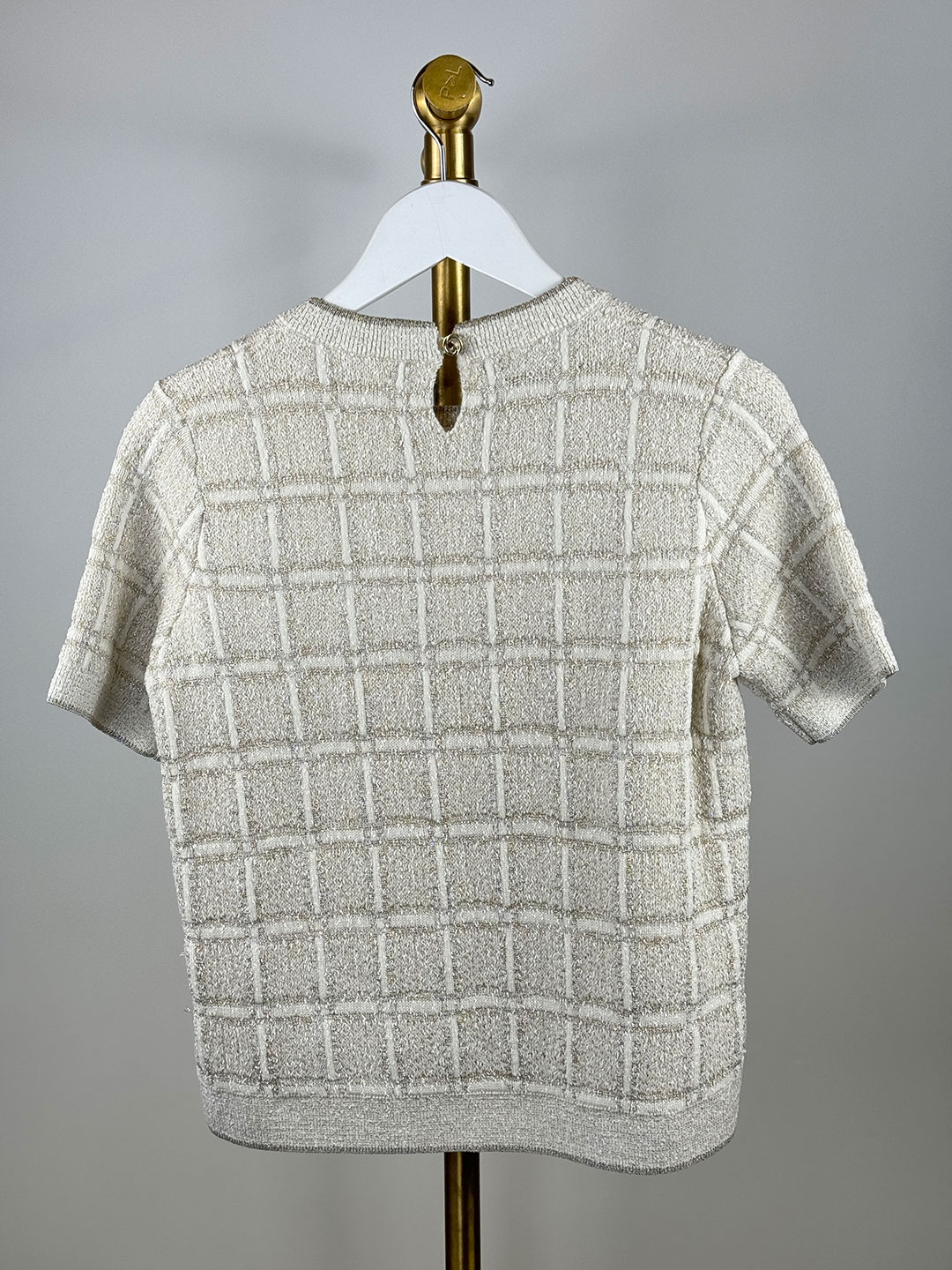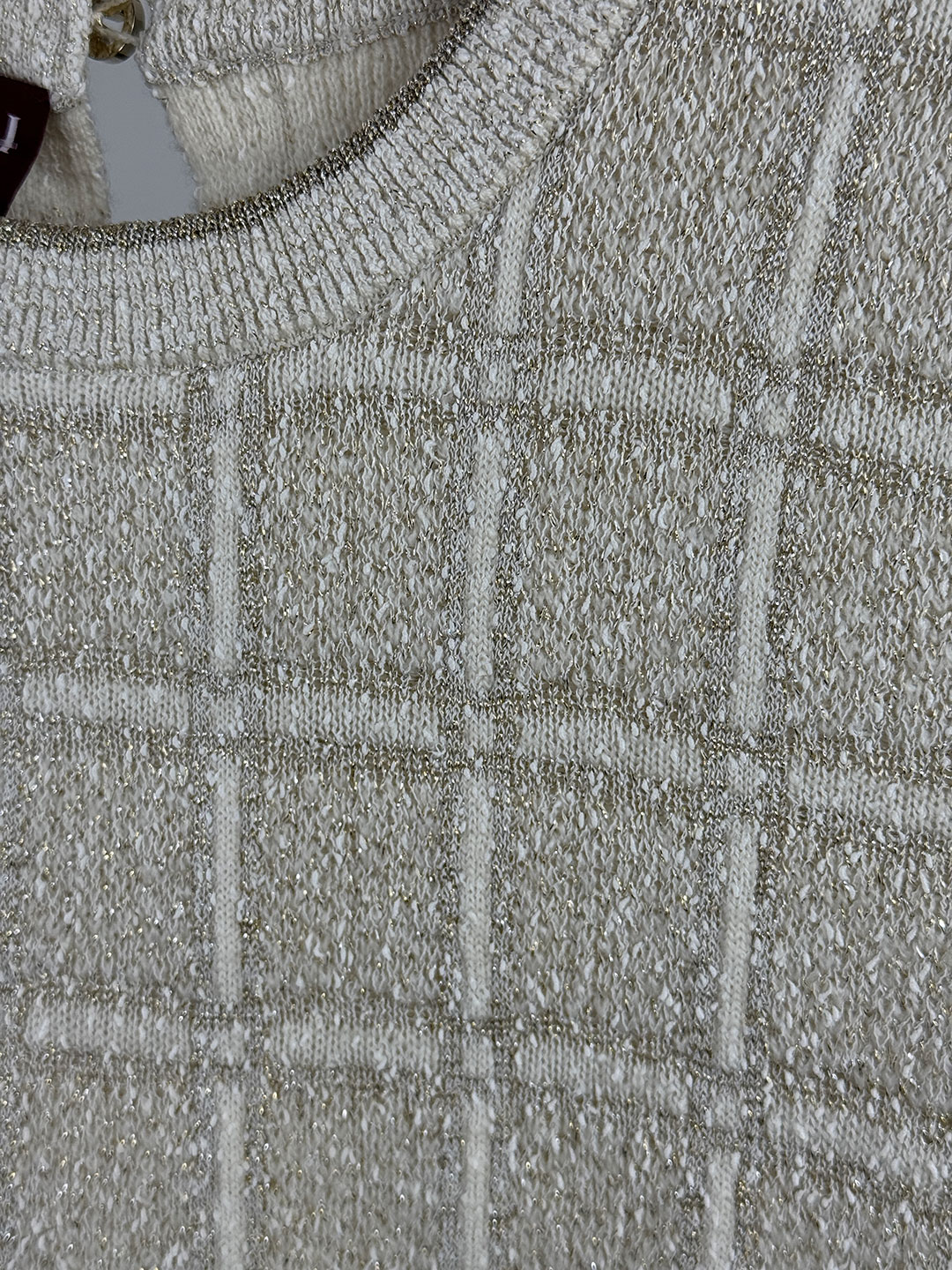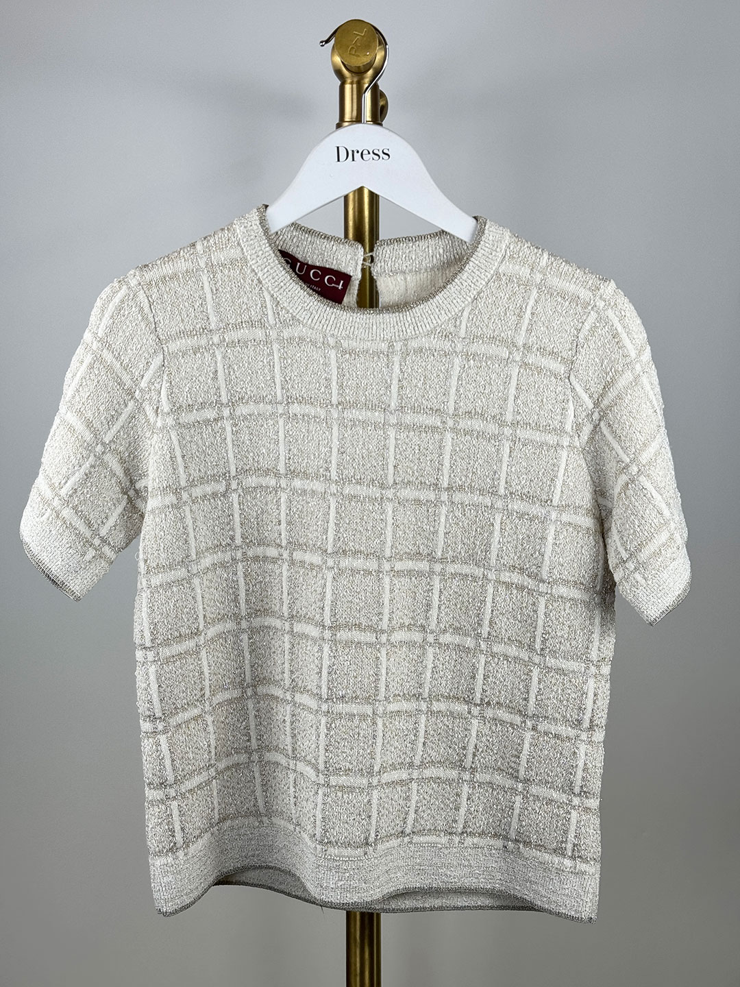 Gucci Ivory Checked Metallic Jacquard Knit Wool Blend Top Size XS