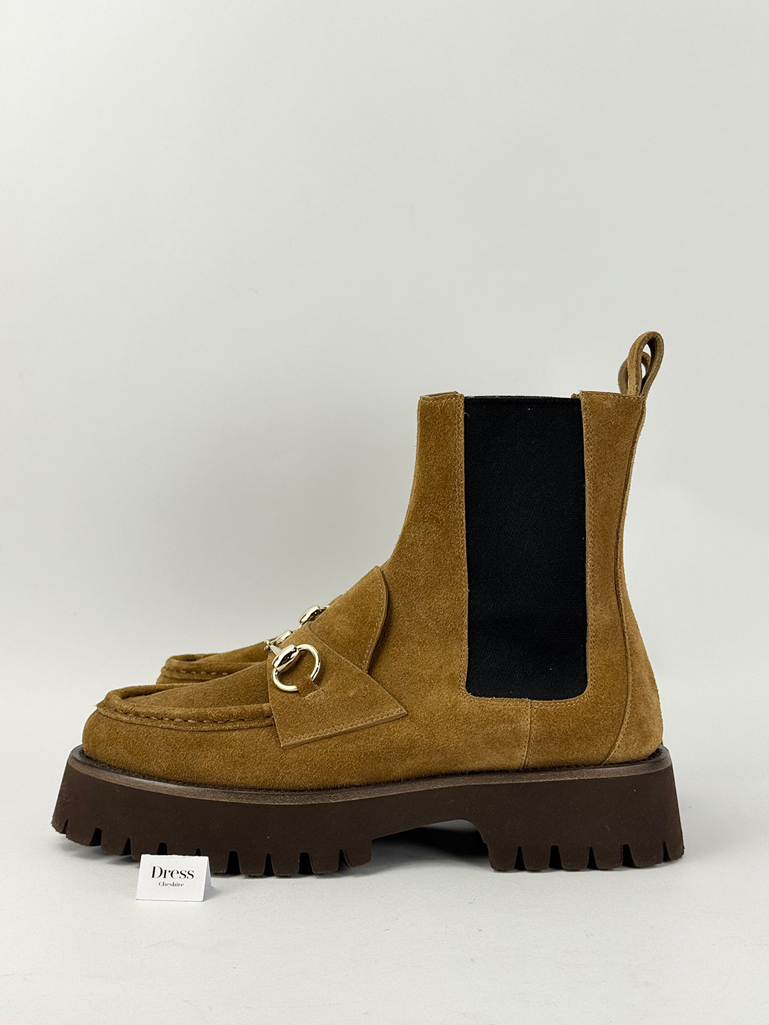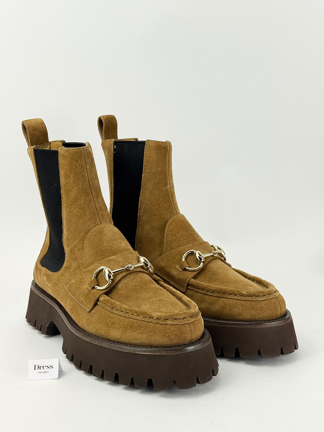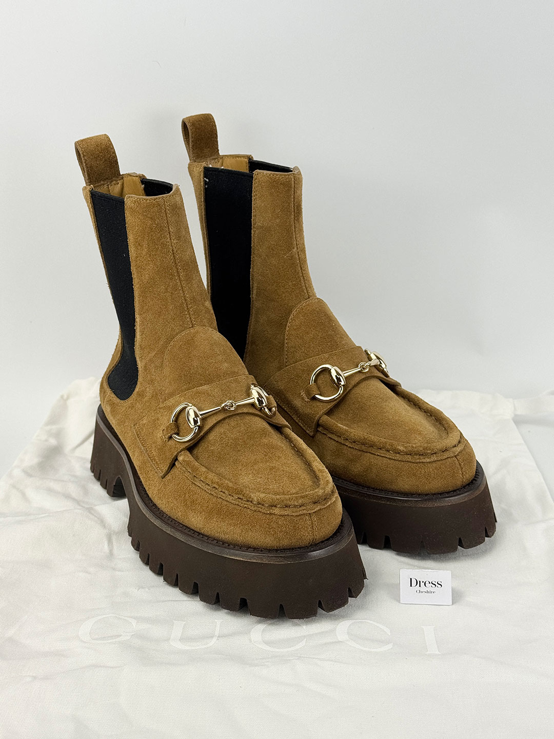 Gucci Sylke Horsebit-detailed Brown Suede Chelsea Boots Size EU 37.5