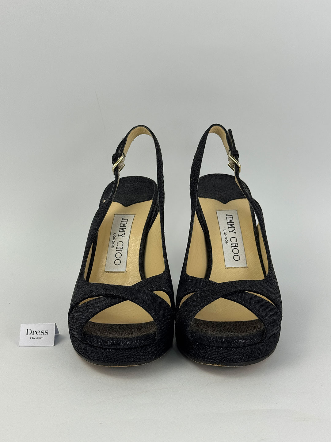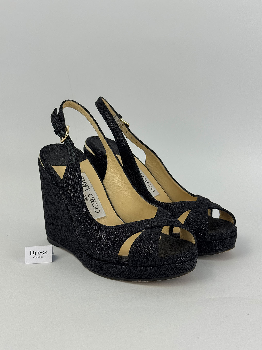 Jimmy Choo Amely 105 Black Glitter Slingback Wedges Size EU 35.5