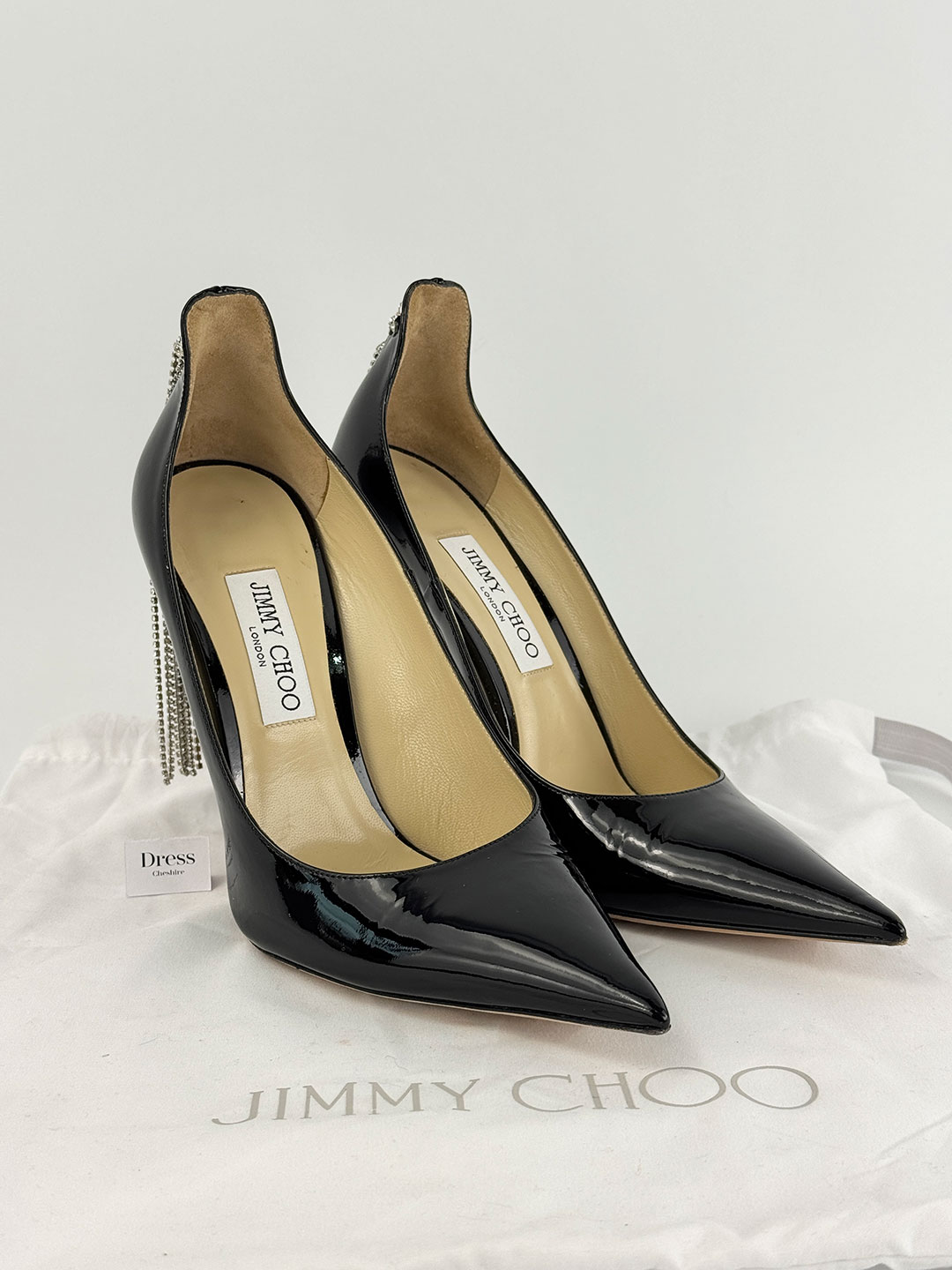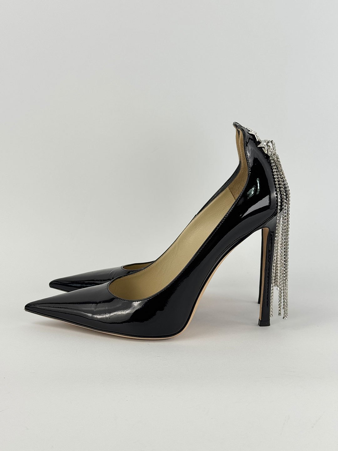 Jimmy Choo Black Patent Star Crystal Embellished Heels Size EU 41