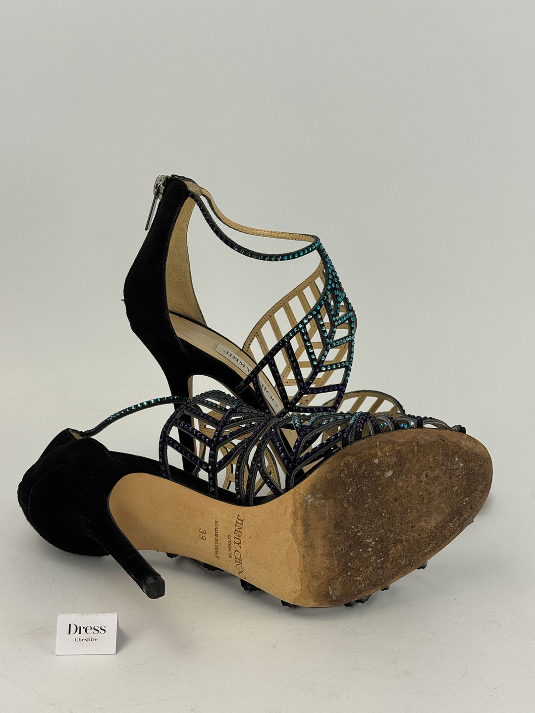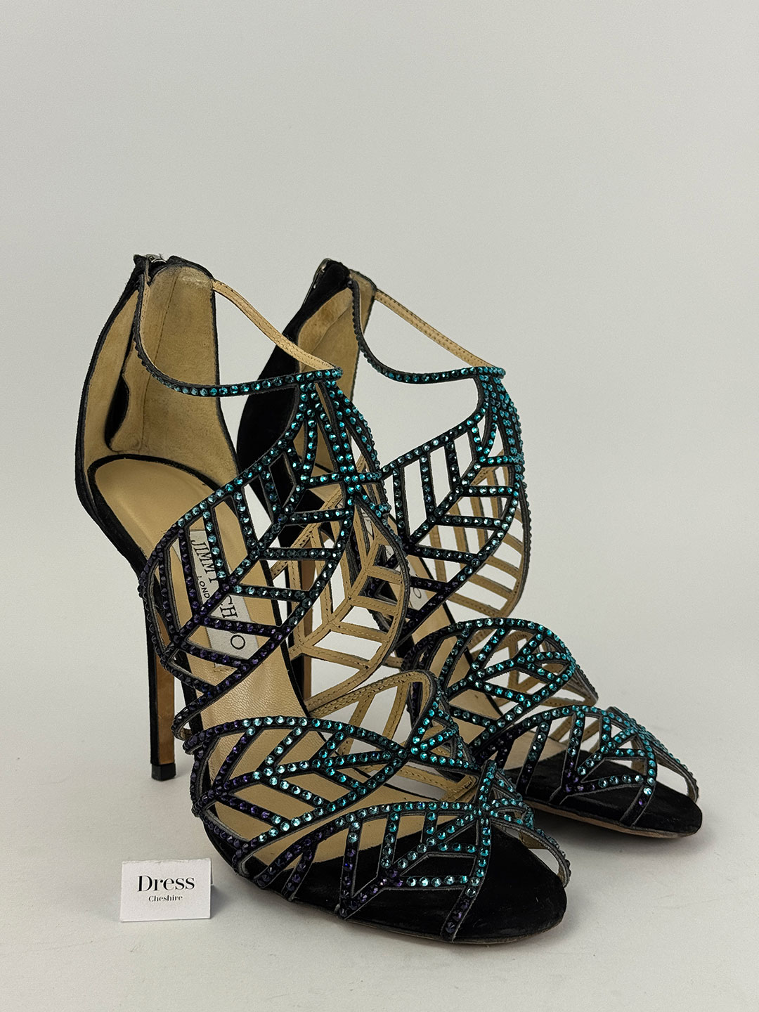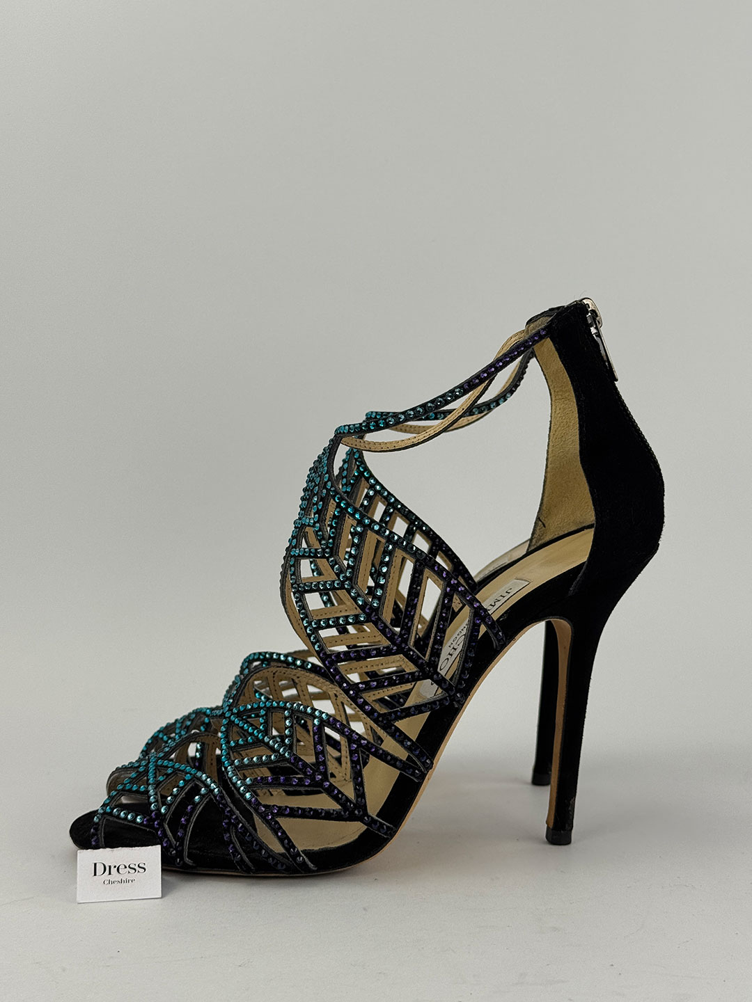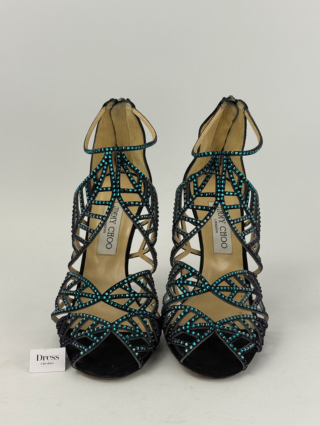 Jimmy Choo Purple & Turquoise Crystal Embellished Heels Size UK 6 Boxed