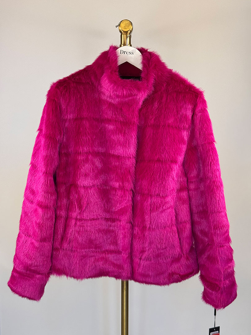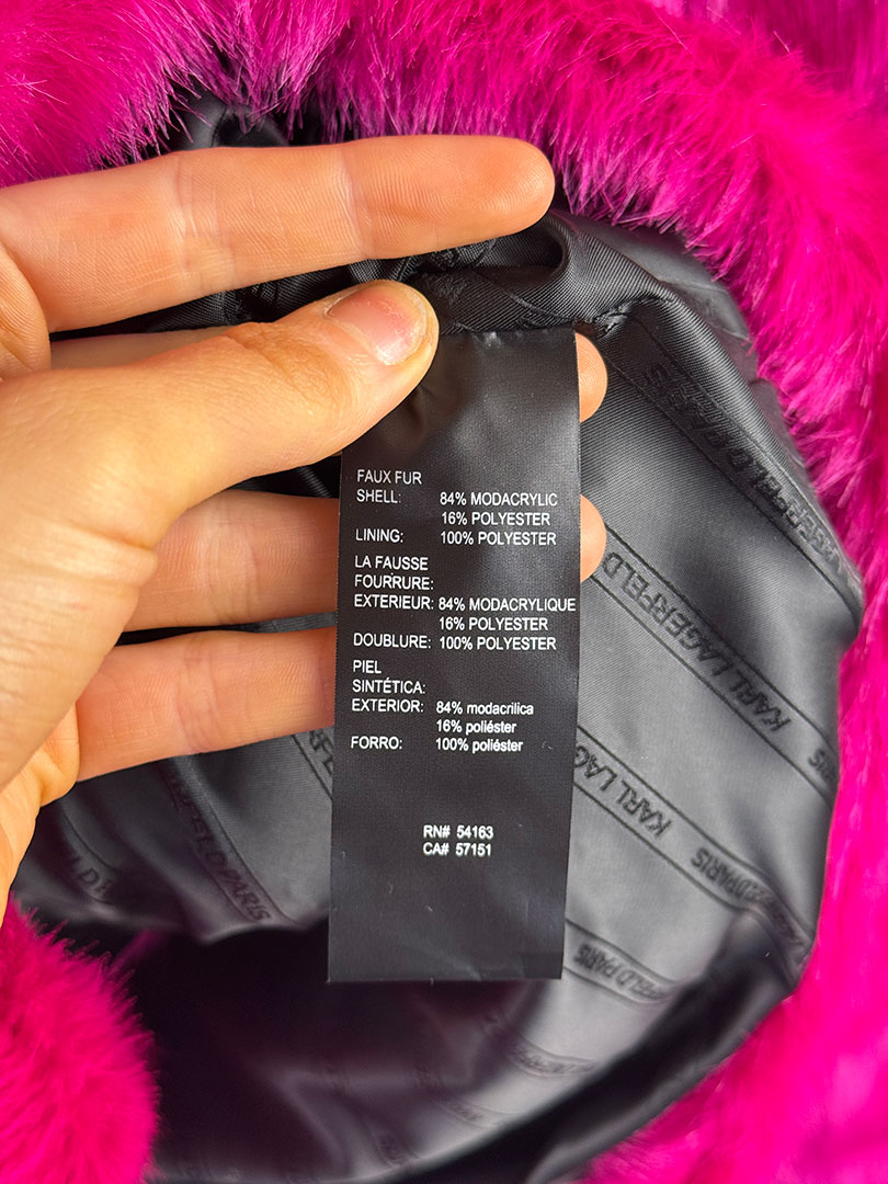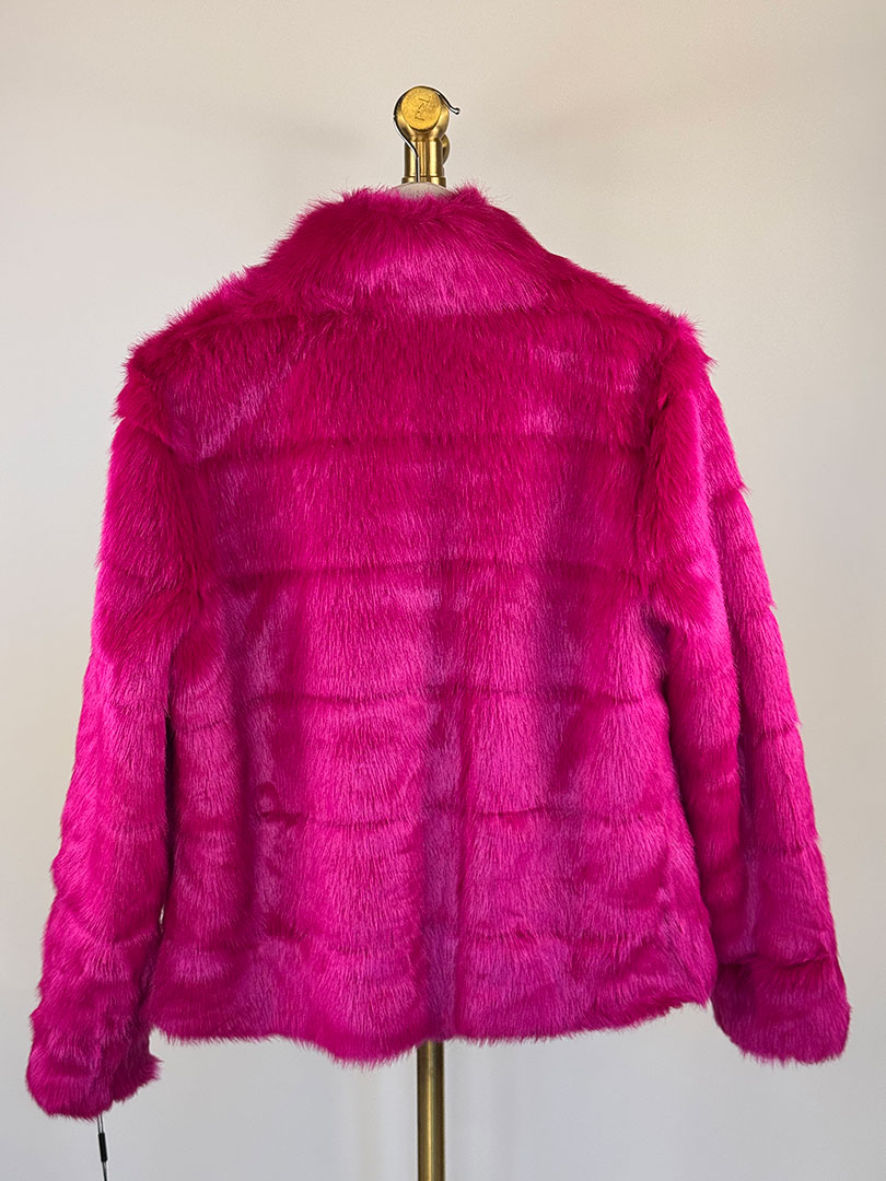 Karl Lagerfeld Pink Tiered Faux Fur Coat Size L