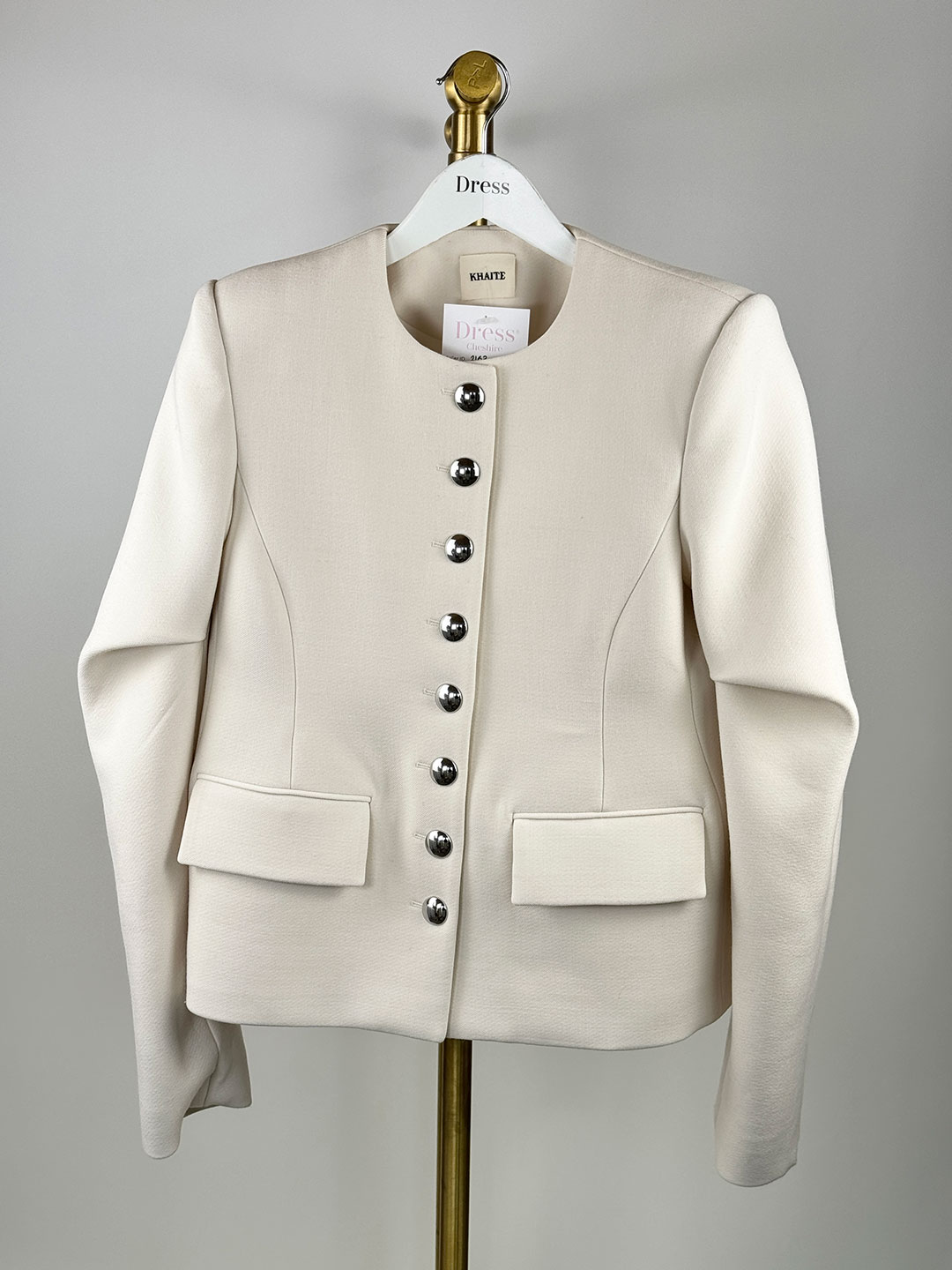 Khaite Silver Buttoned Cream Padded Jacket Size 4