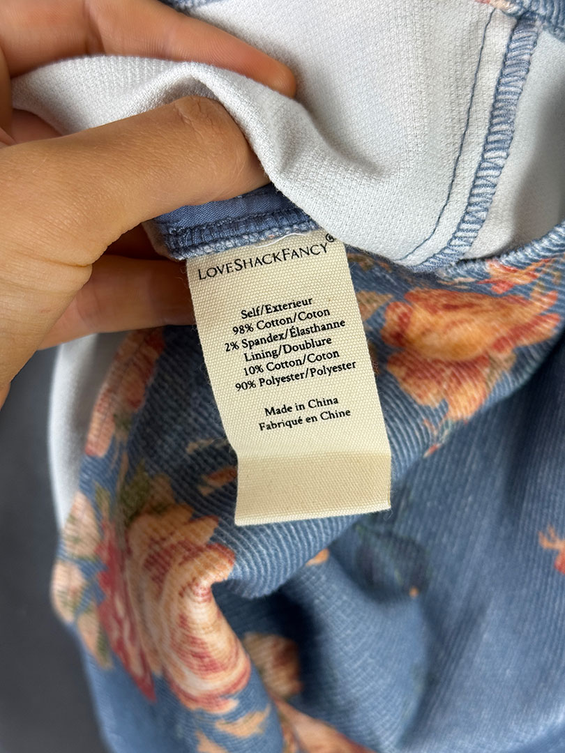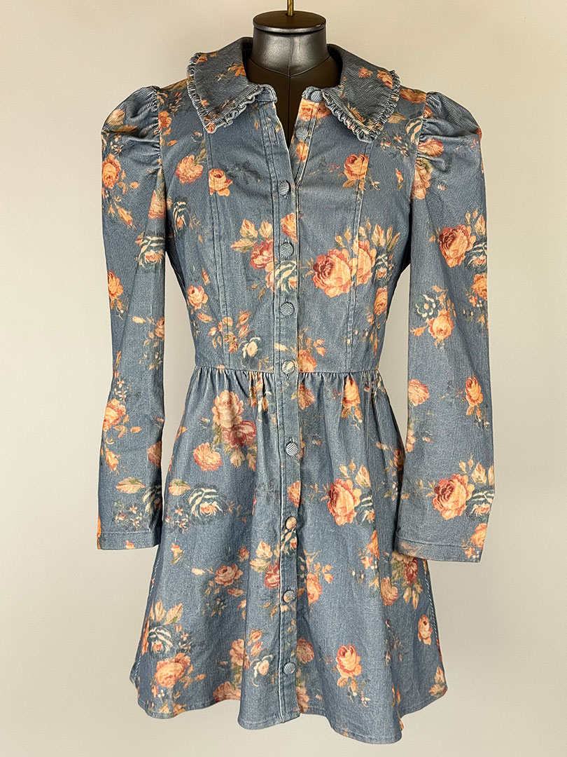 Love Shack Fancy Blue Floral Corduroy Mini Dress Size 2 (UK 6)