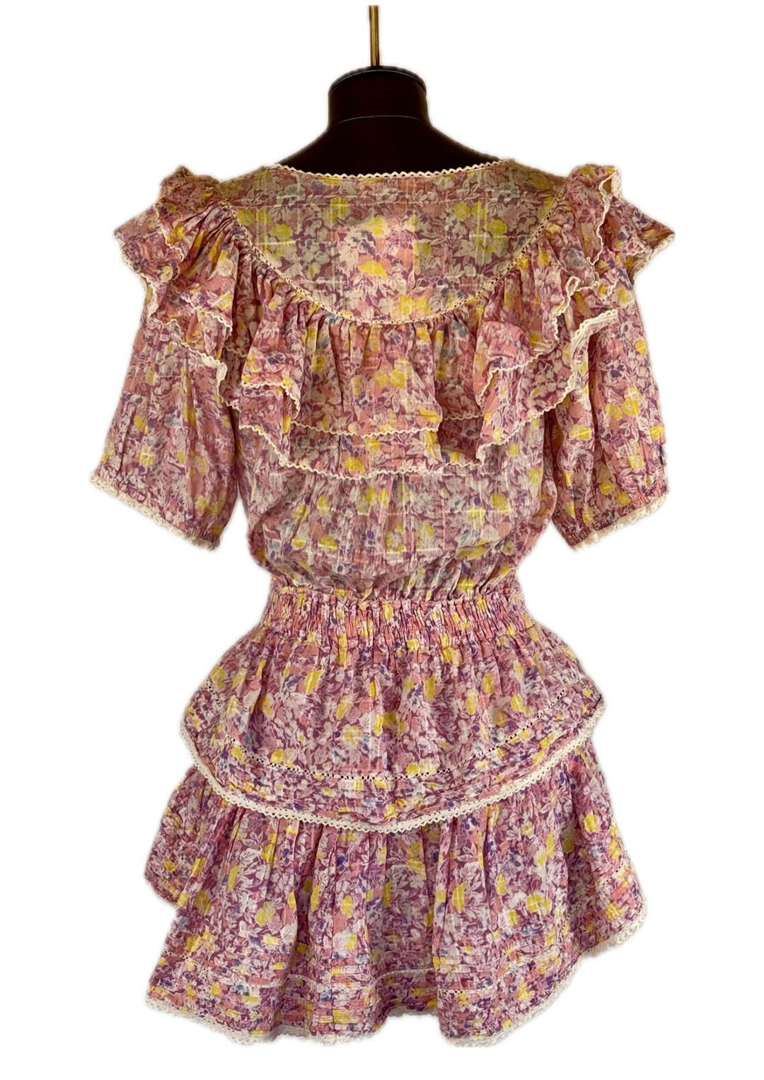 Pre-Owned LoveShack Fancy Lilac, Pink & Lemon Floral Dress Size XS