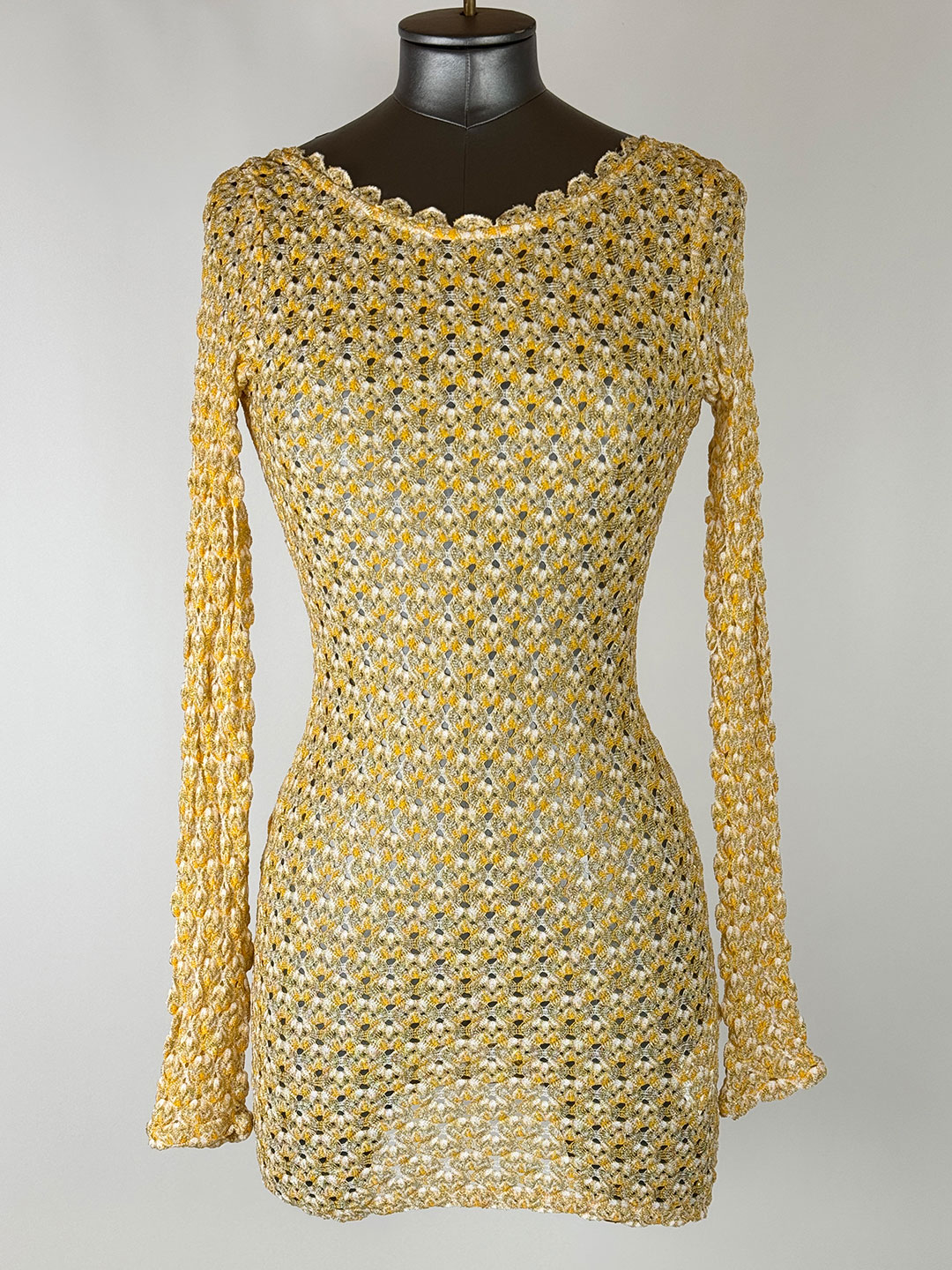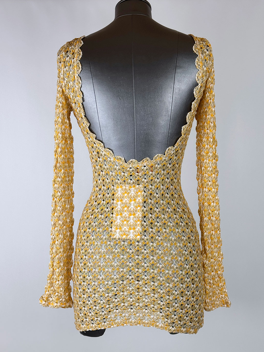 Missoni Scalloped Yellow Metallic Crochet Knit Mini Dress Size 38 (UK 8)