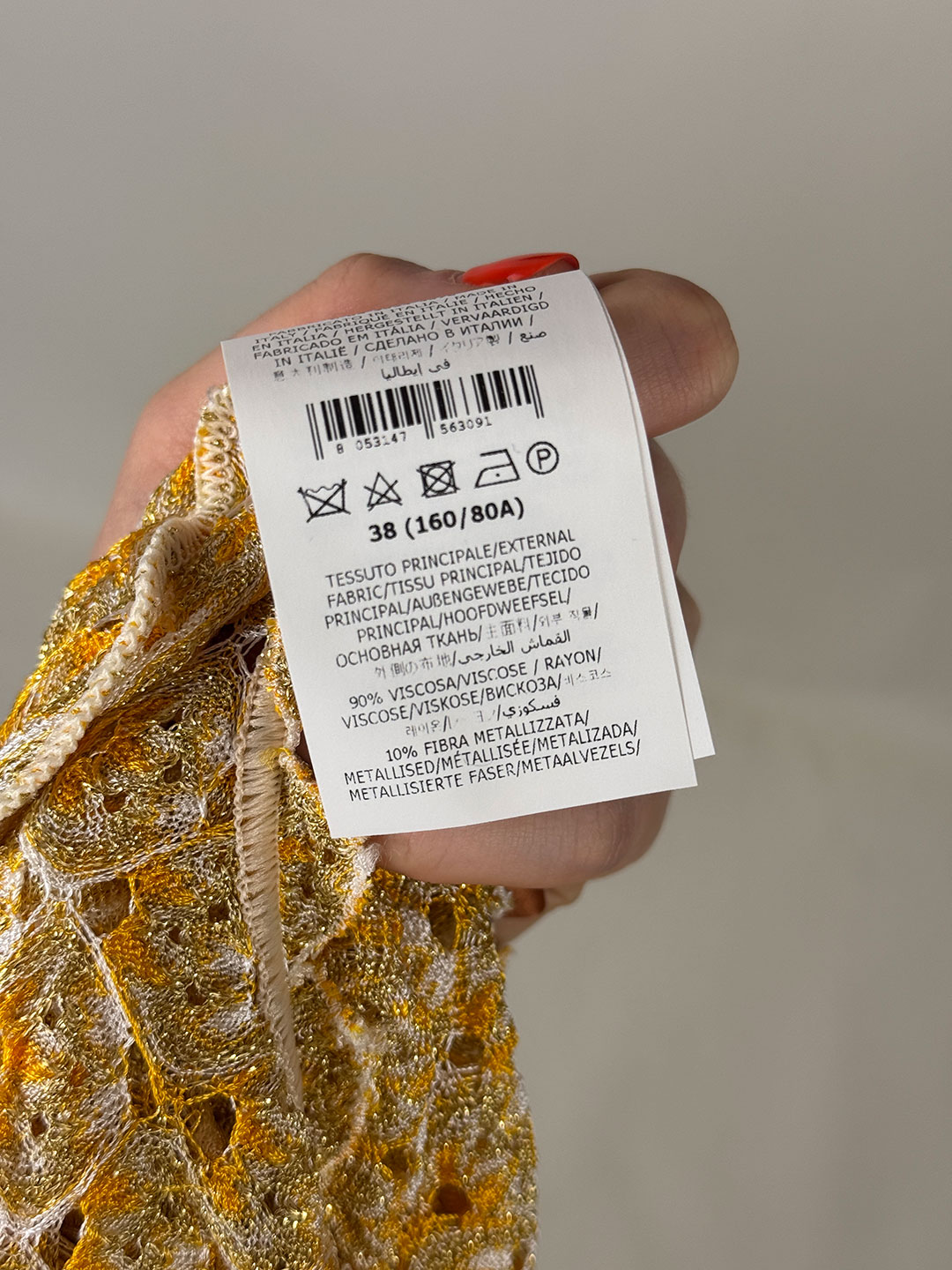 Missoni Scalloped Yellow Metallic Crochet Knit Mini Dress Size 38 (UK 8) feels small.