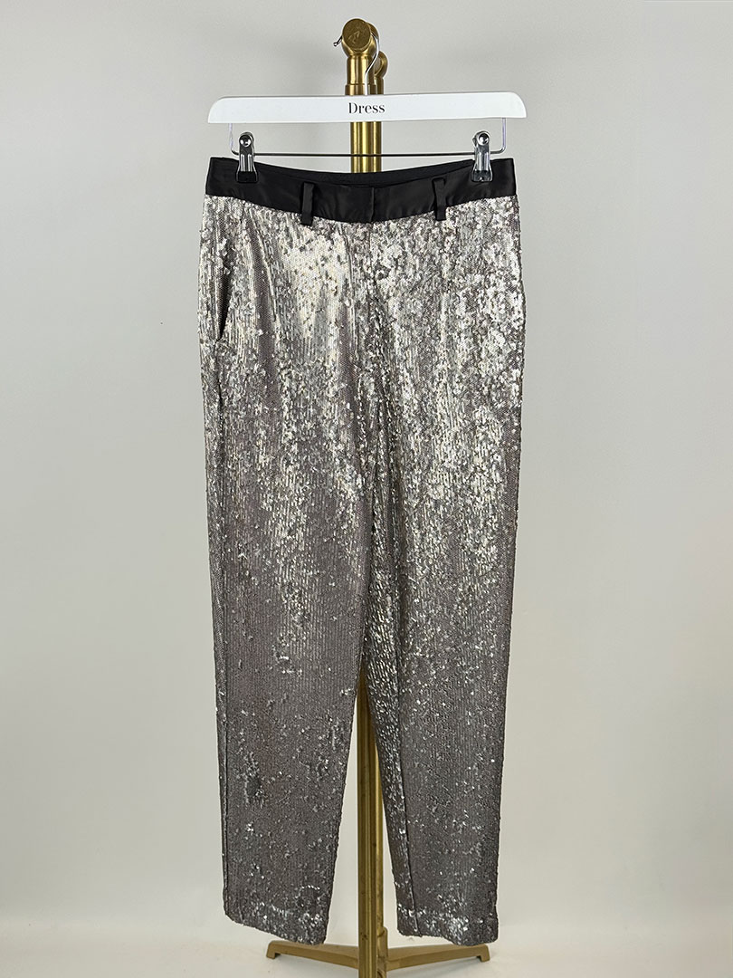Pre-Owned All Saints Sequin Silver Trousers Size UK 8.