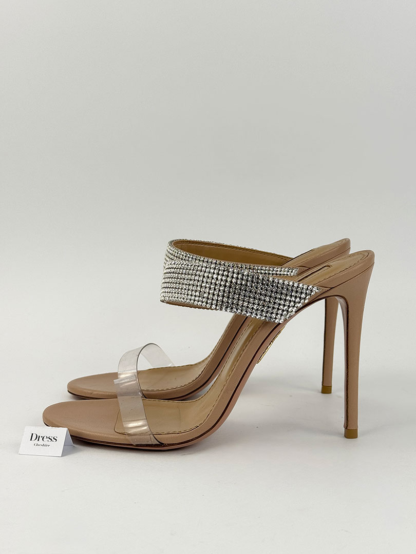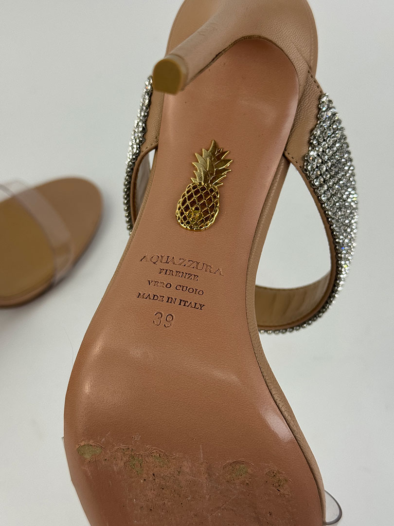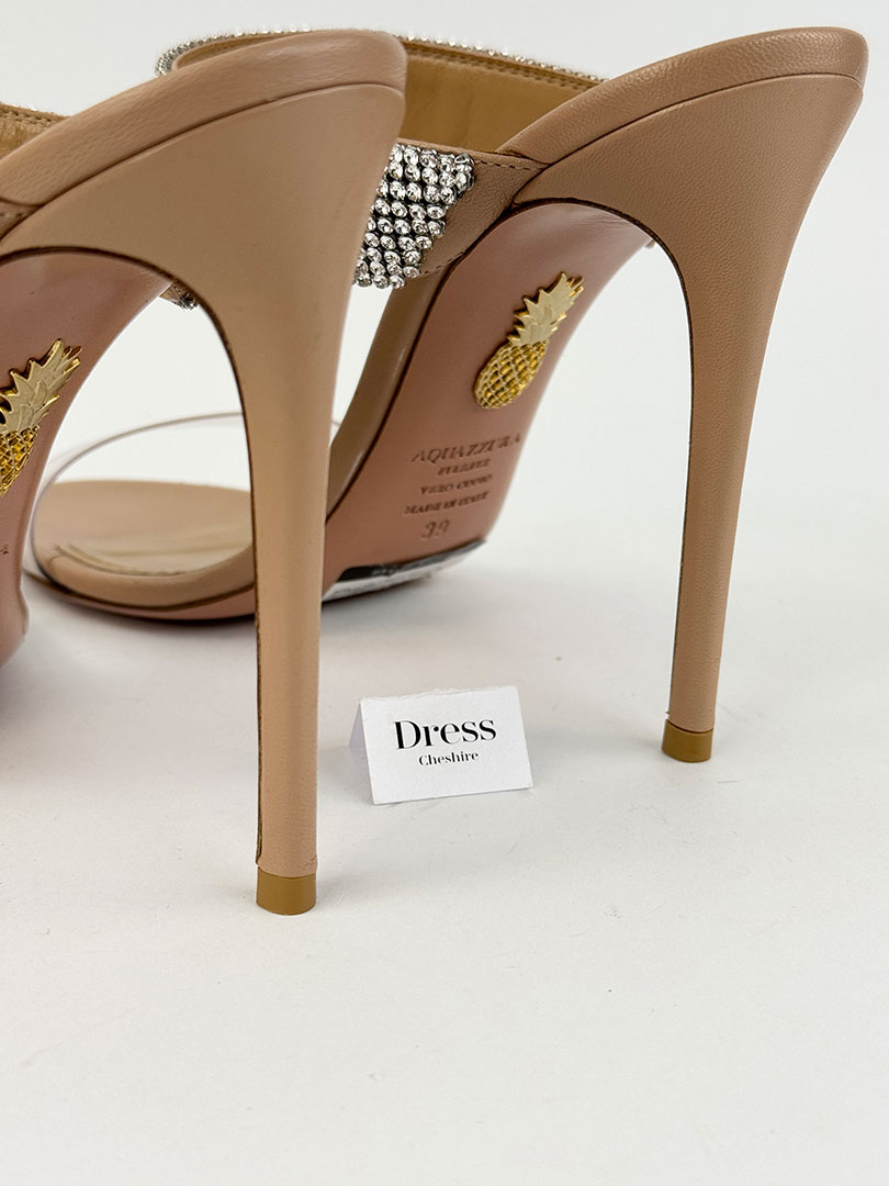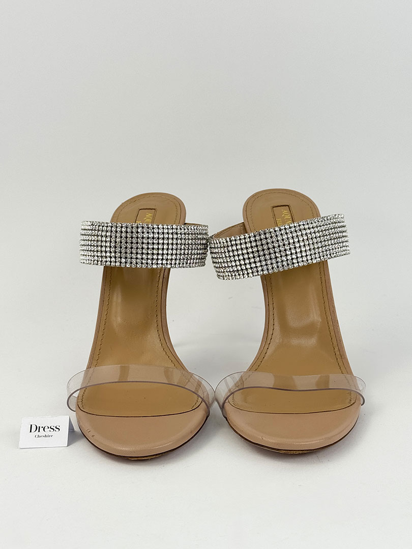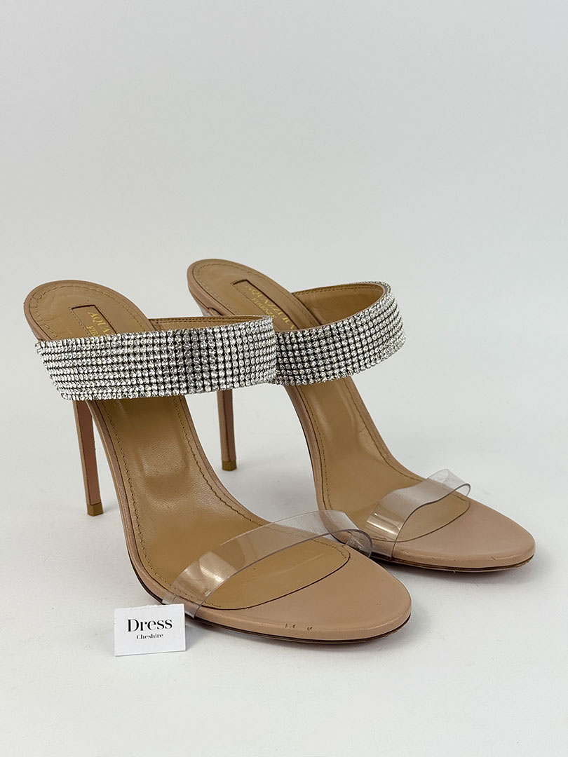 Pre-Owned Aquazzura Nude Crystal Embellished Heels Size EU 39