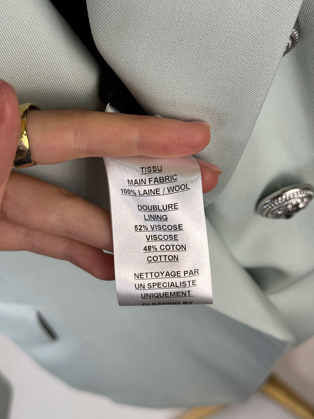 Pre-Owned Balmain Mint Green Blazer Jacket With Silver Buttons Size 44 (UK 16).
