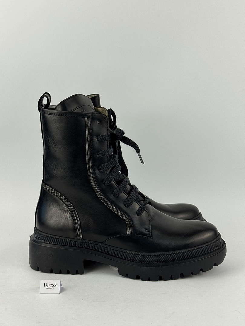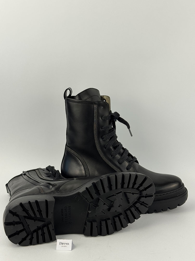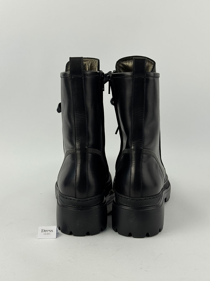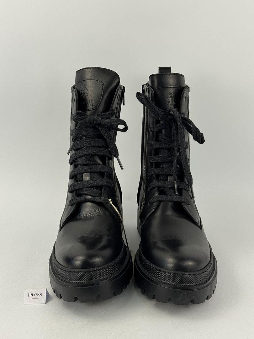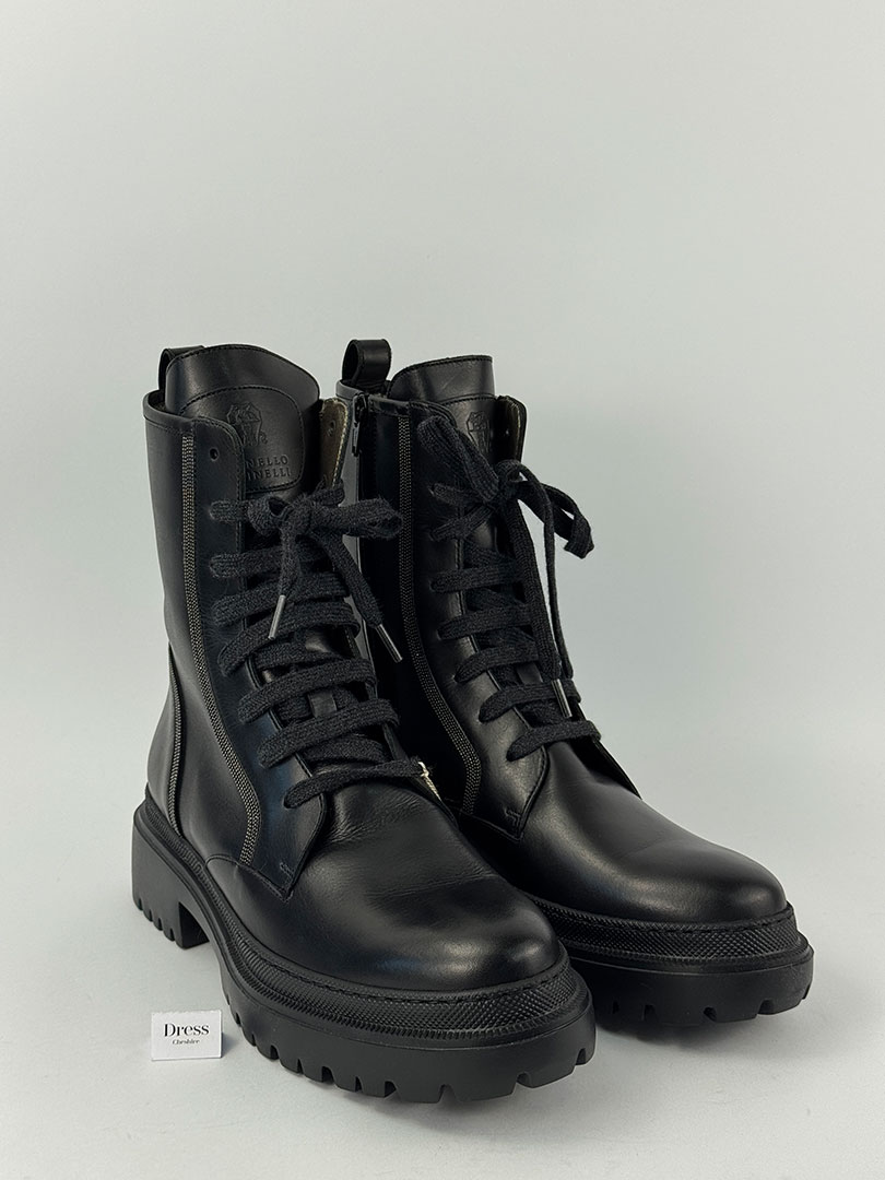 Pre-Owned Brunello Cucinelli Combat Black Ankle Boots Size EU 41