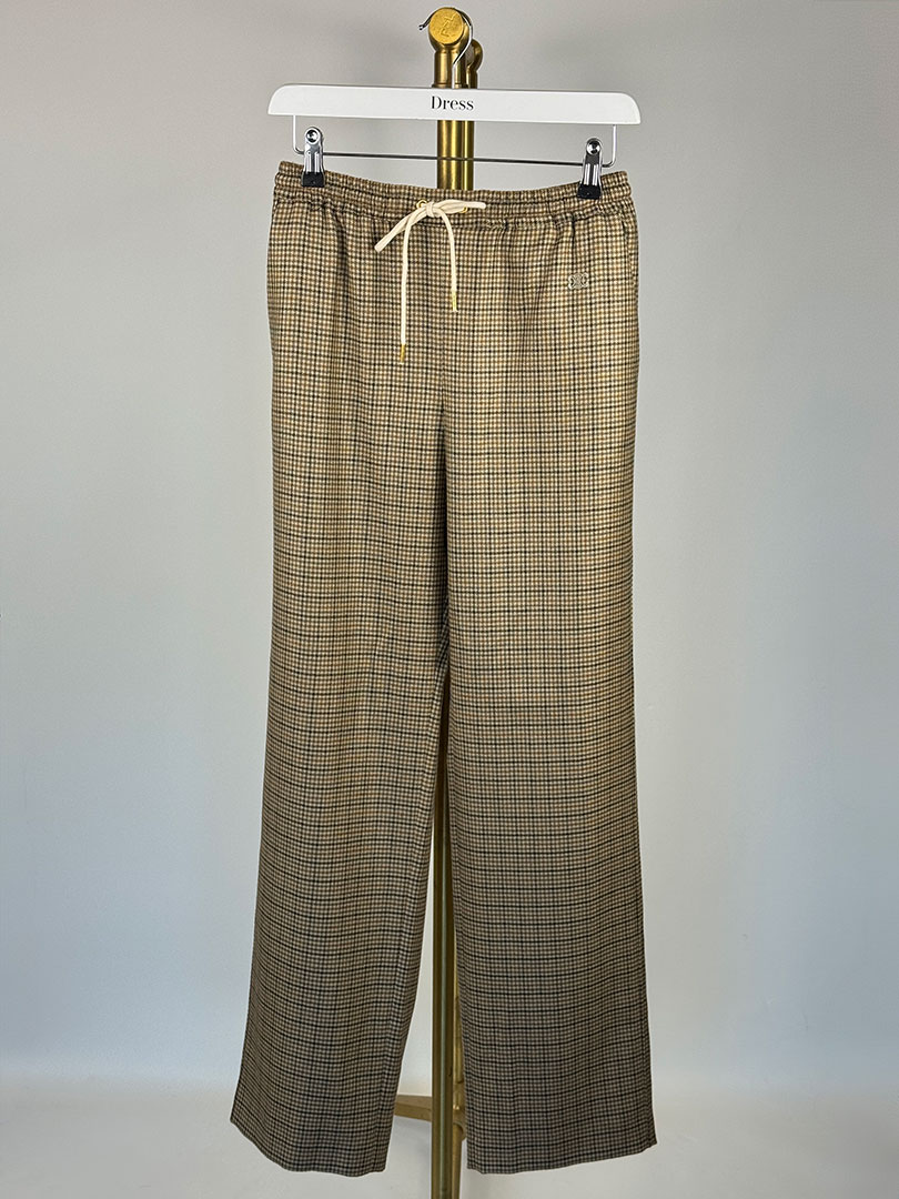 Pre-Owned Celine Beige Check Draw String Waist Trousers Size 34 (UK 6)
