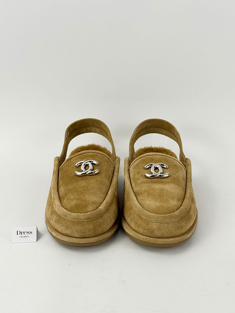 Pre-Owned Chanel Suede Beige Loafers Size 37.5.