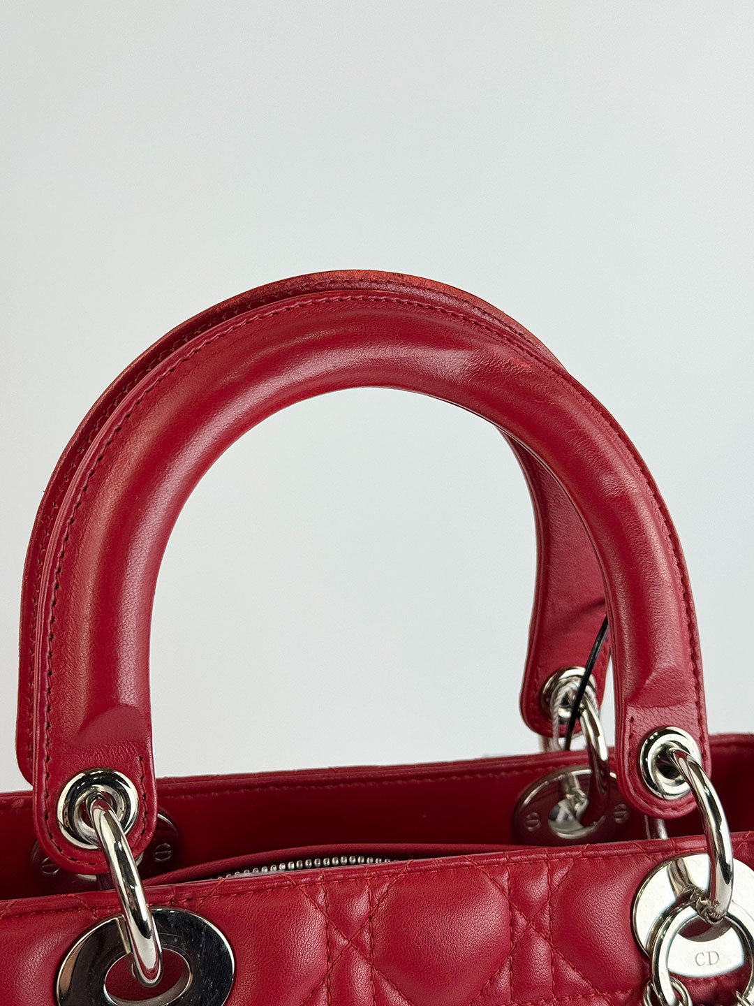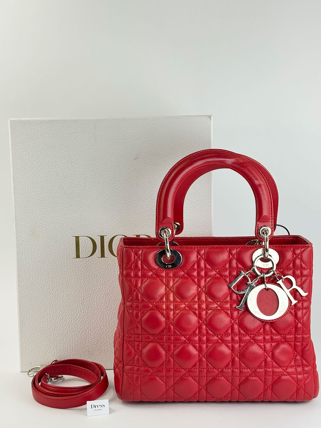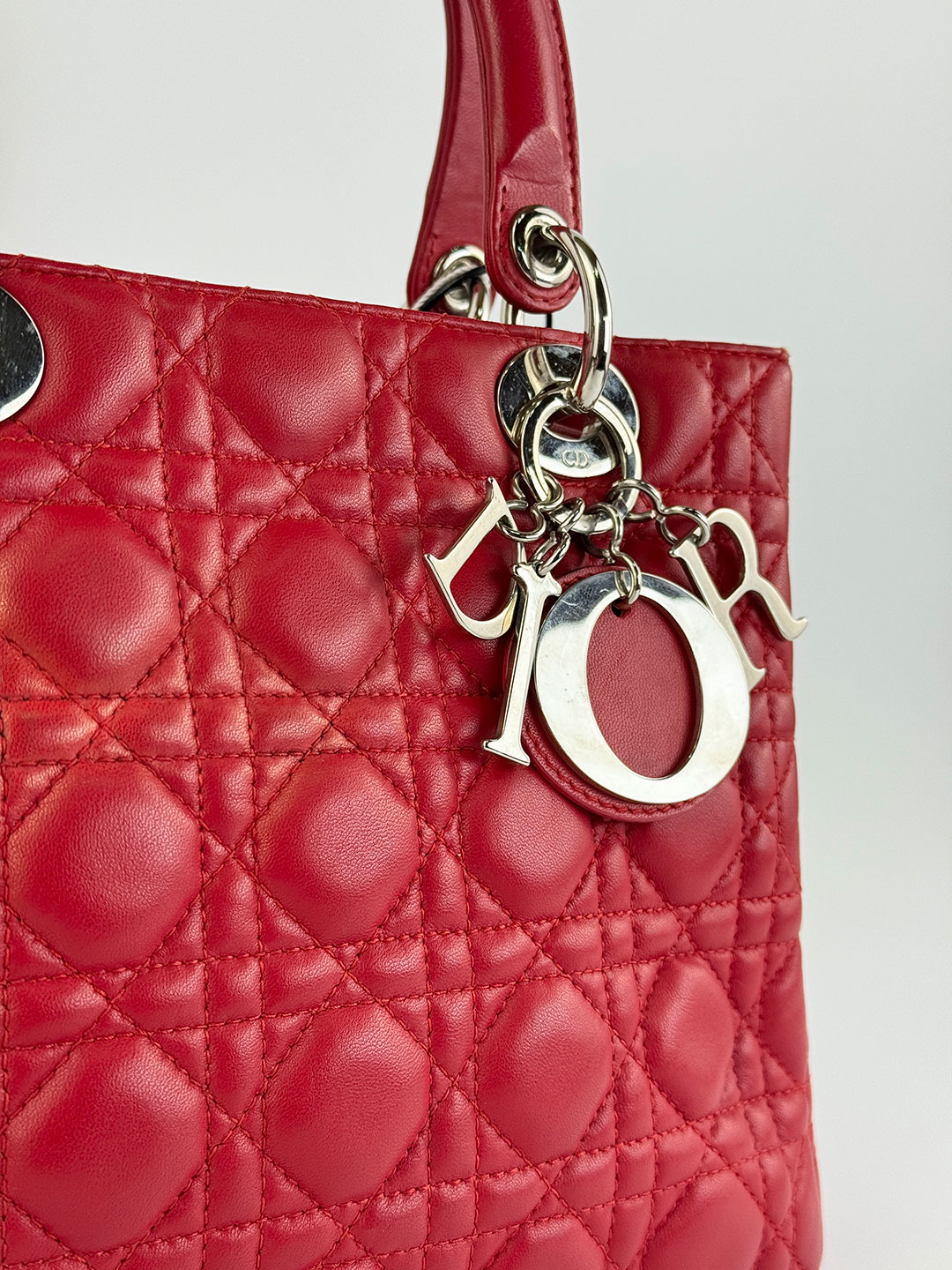 Pre-Owned Christian Dior Lady Dior Red Leather Cannage Quilted Bag