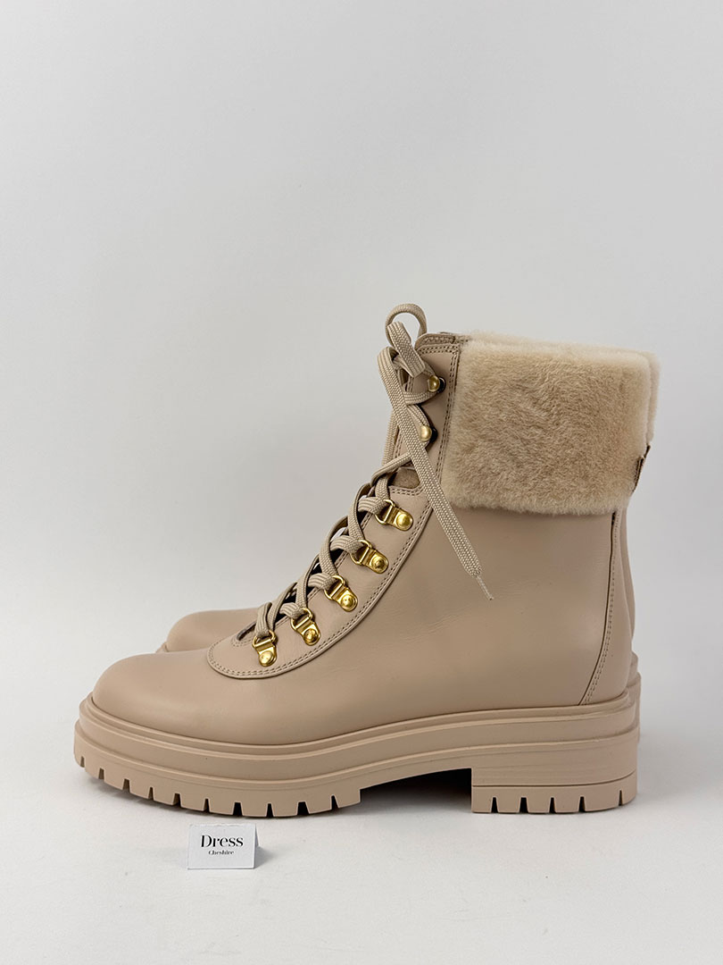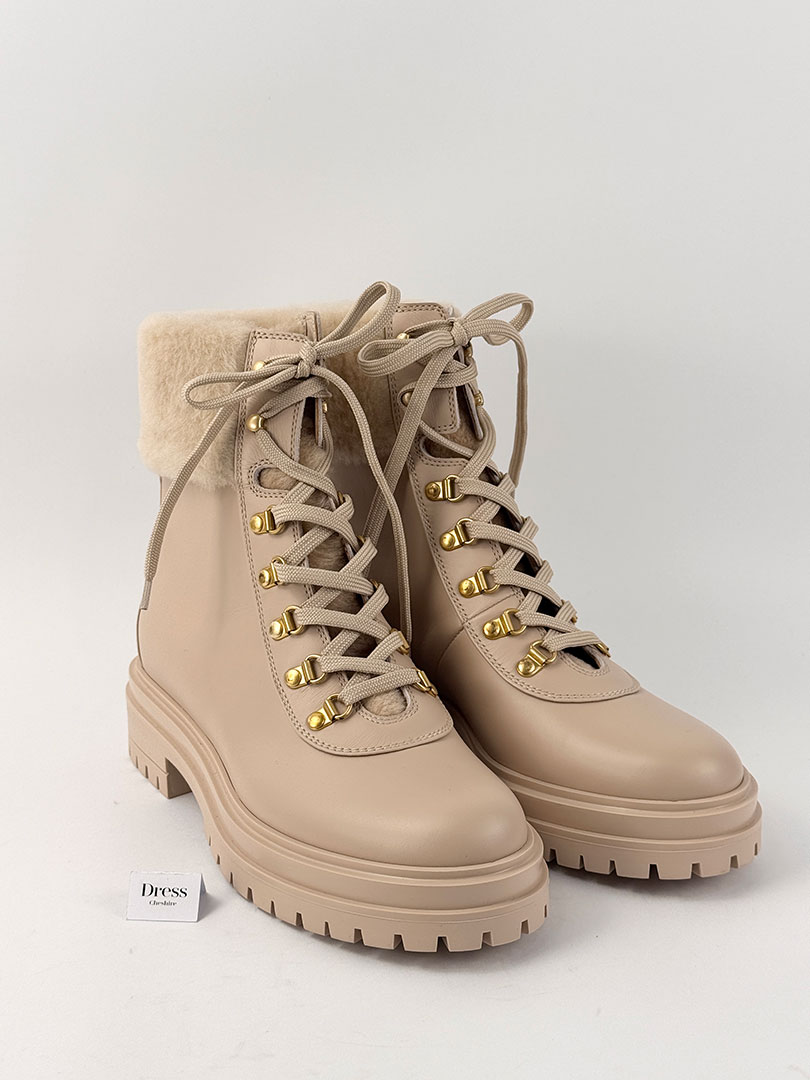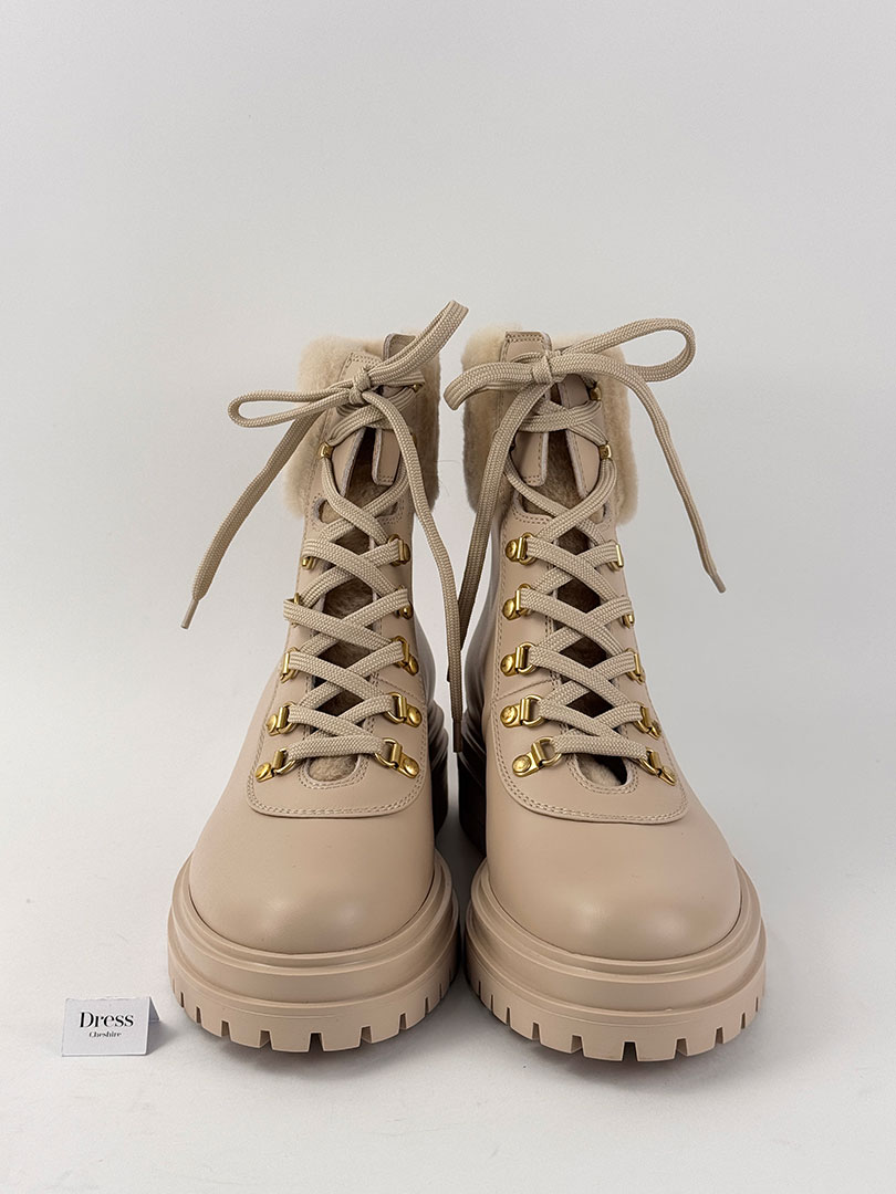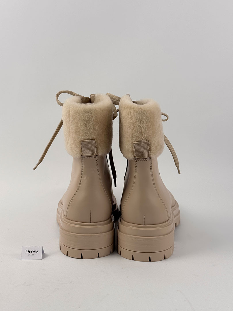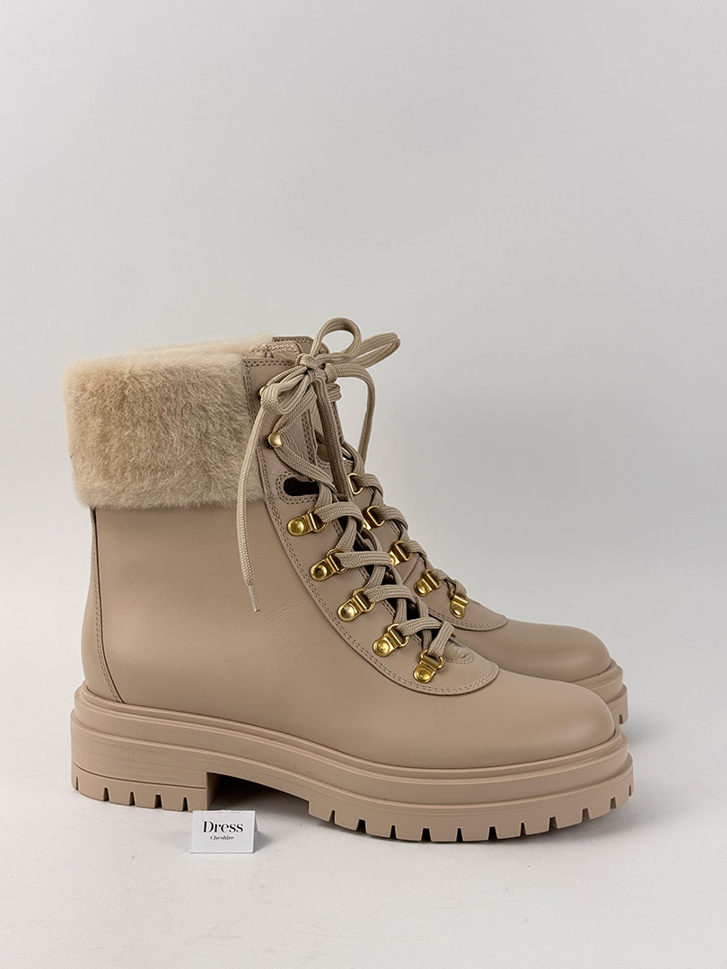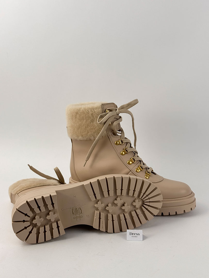 Pre-Owned Gianvito Rossi Shearling-Lined Leather Combat Boots Size EU 37.