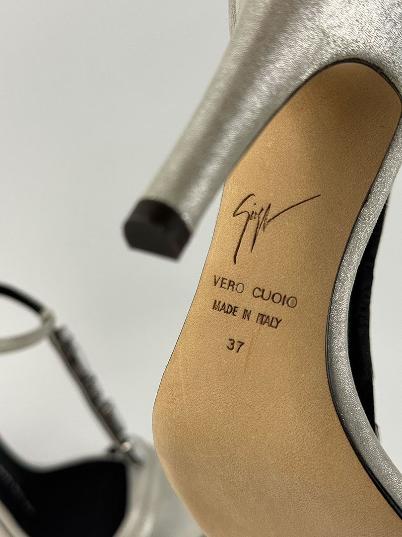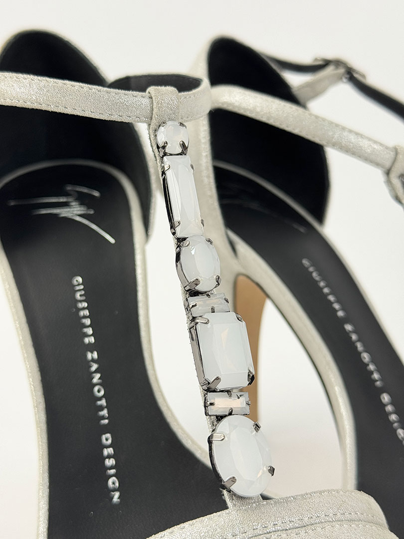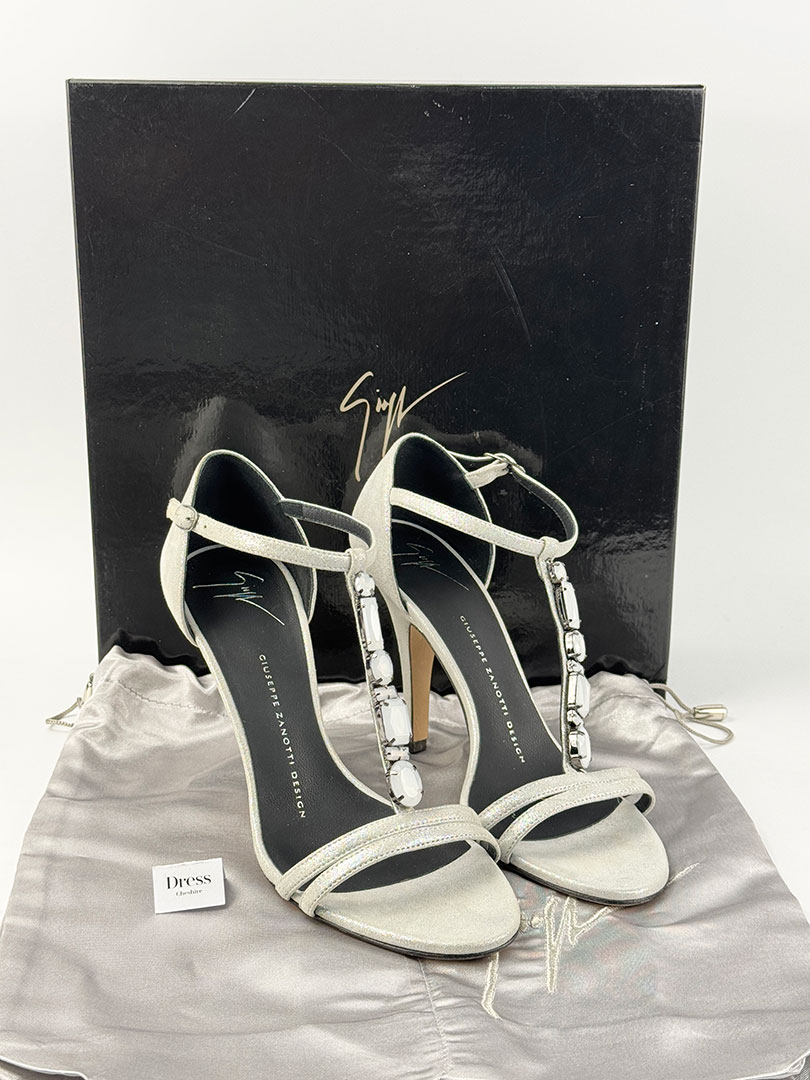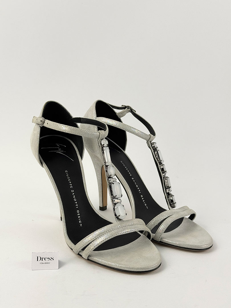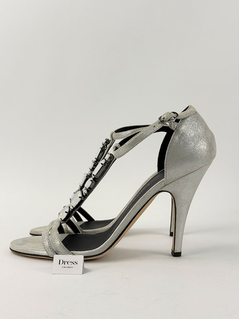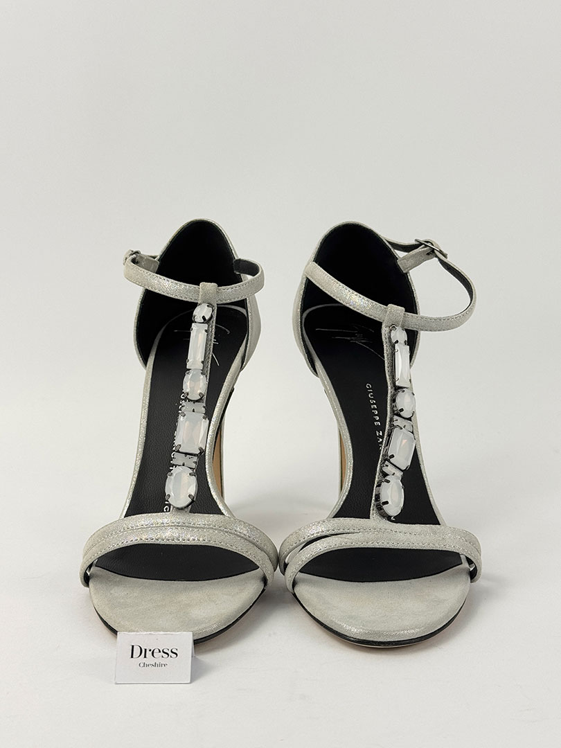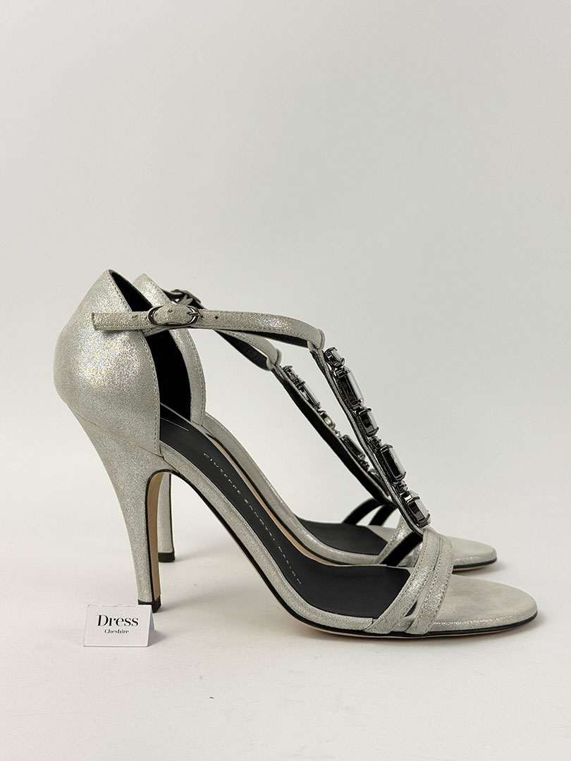 Pre-Owned Giuseppe Zanotti Crystal Embellished Silver Glitter Heels Size 37