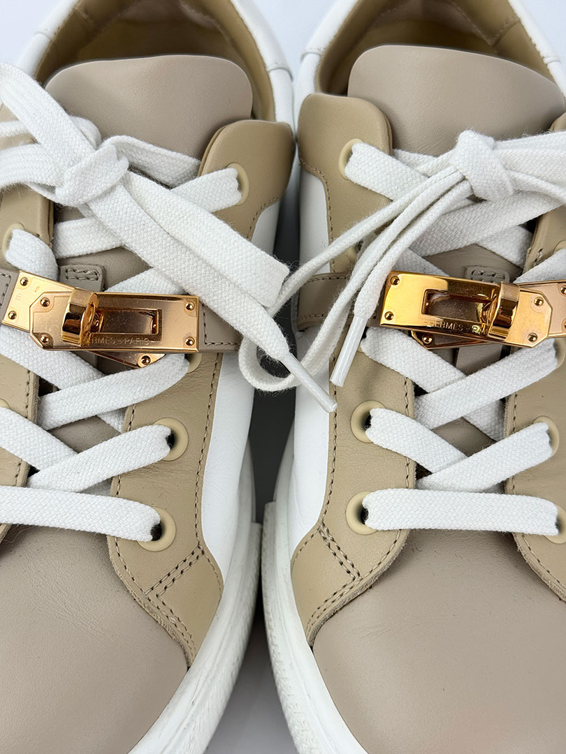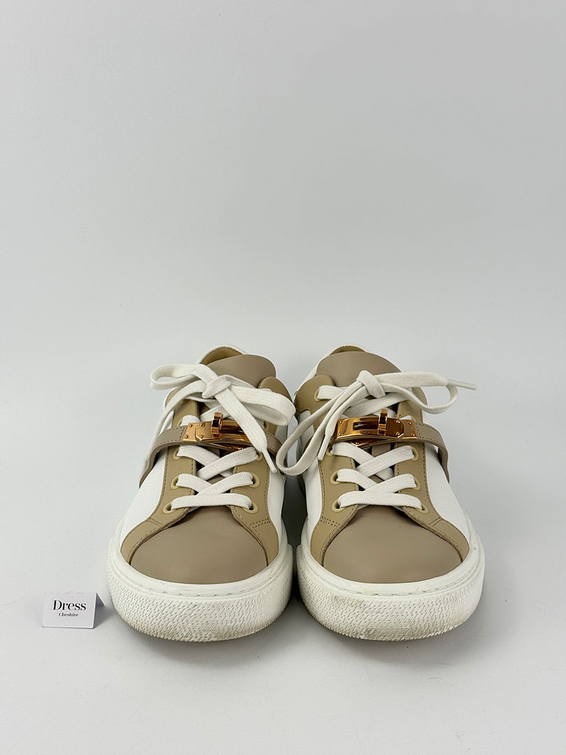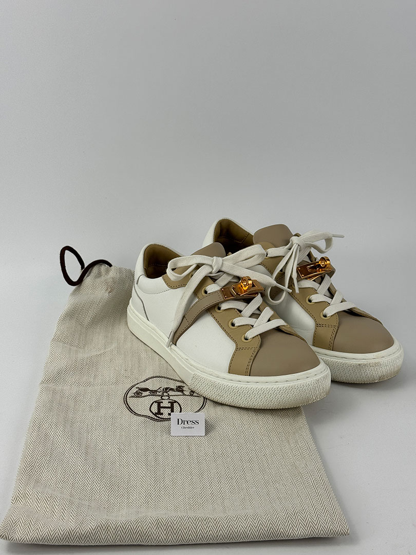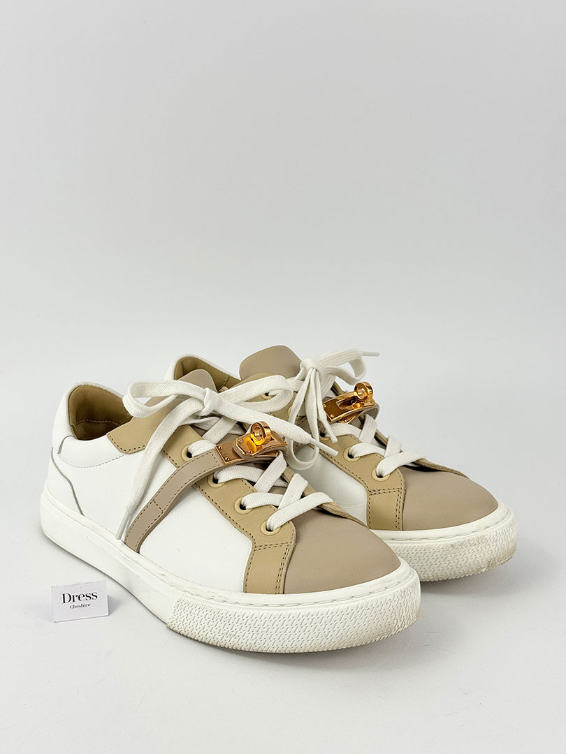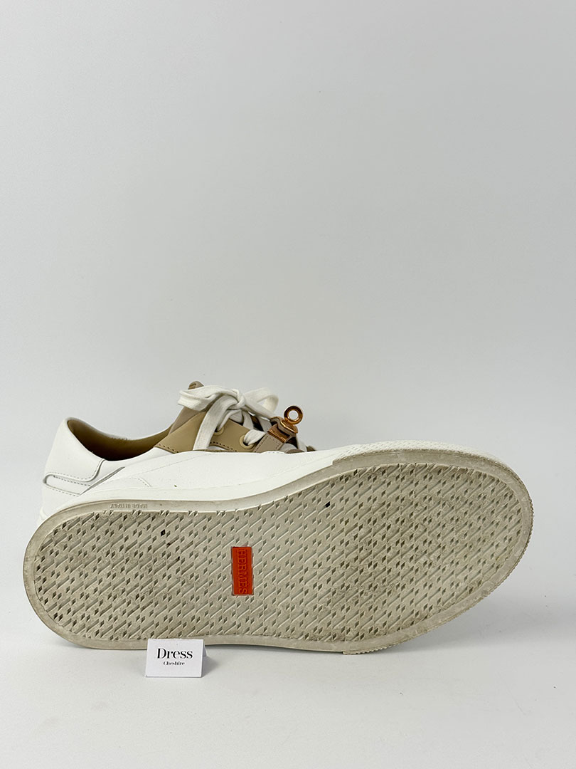 Pre-Owned Hermes Day White And Beige Trainers Size 36.5.