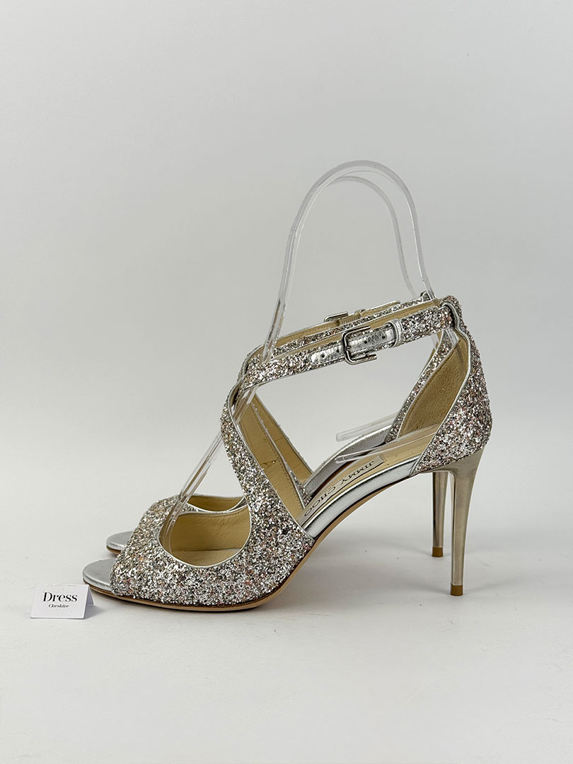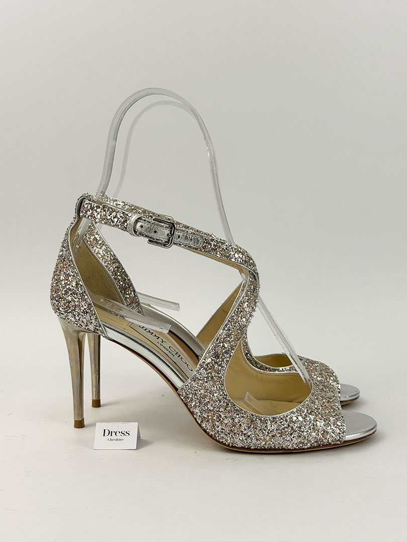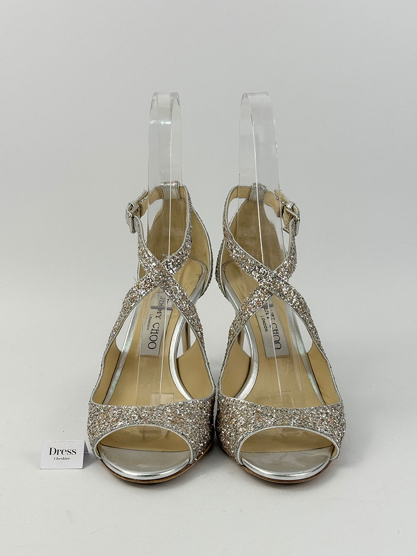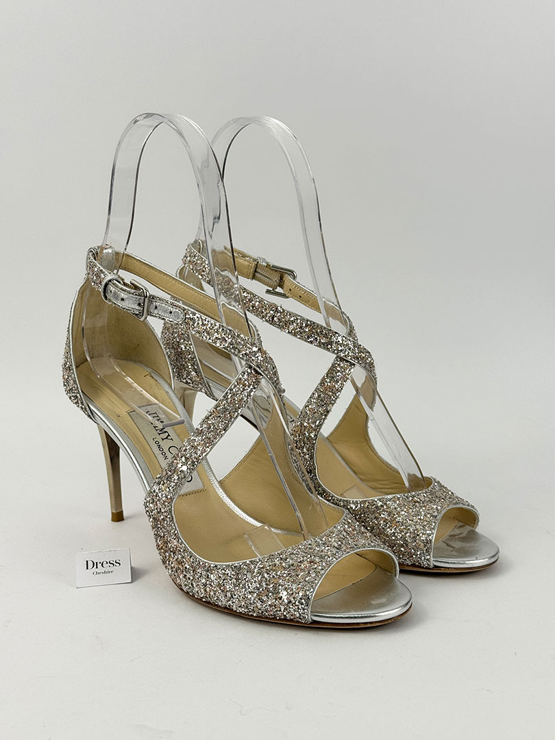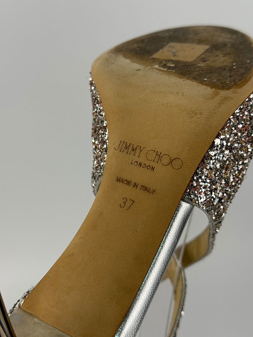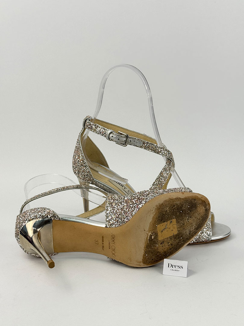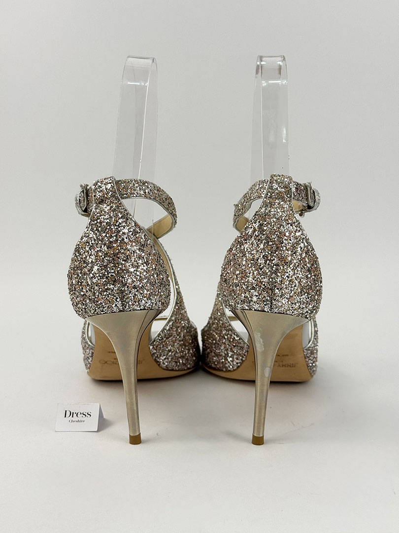 Pre-Owned Jimmy Choo Gold Glitter Heels Size 37