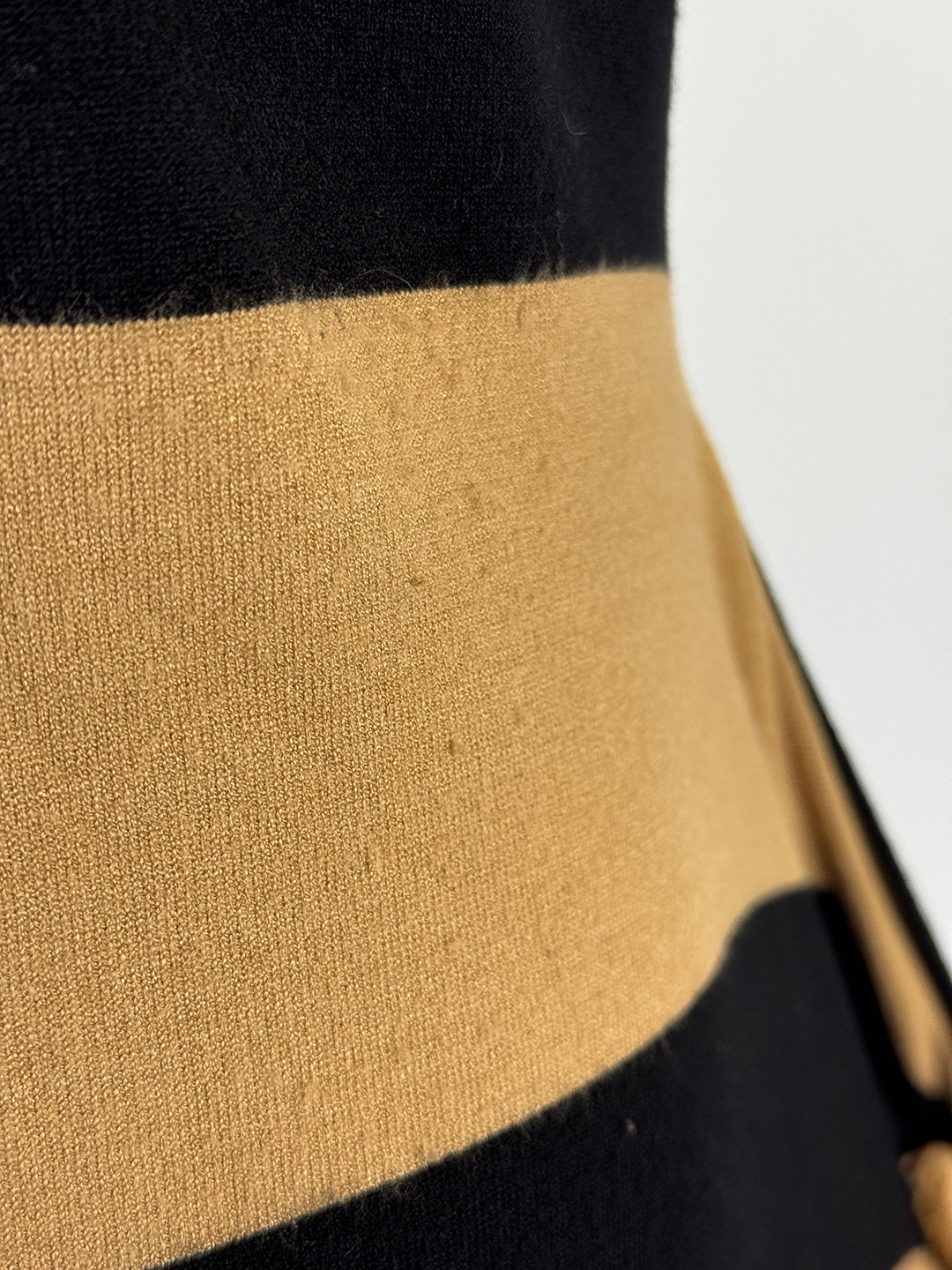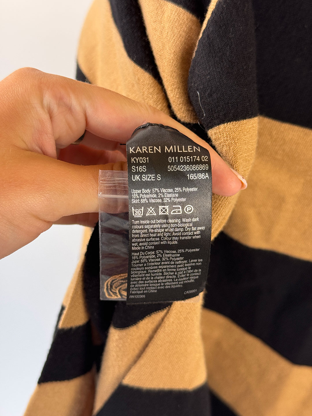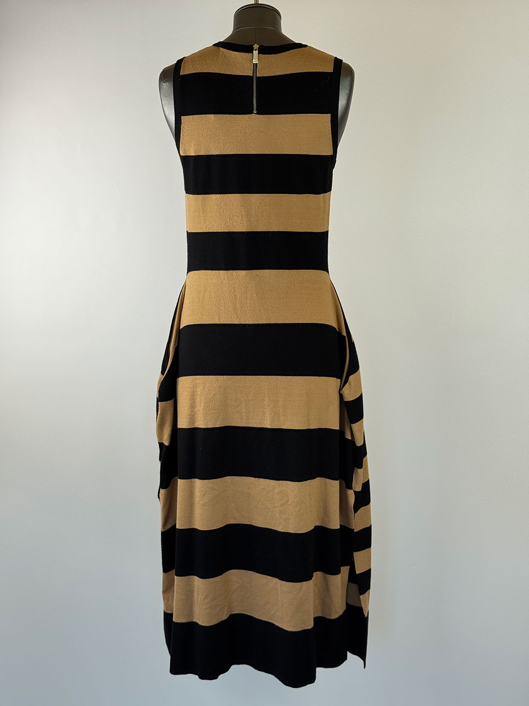 Pre-Owned Karen Millen Beige & Black Stripe Knit Dress with pockets Size S